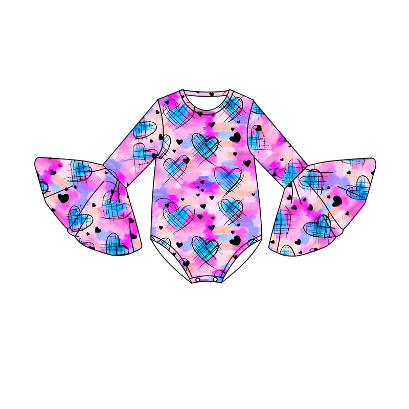 (Pre-order)LR0871 Heart Pink Tie-dye Print Baby Girls Valentine's Romper