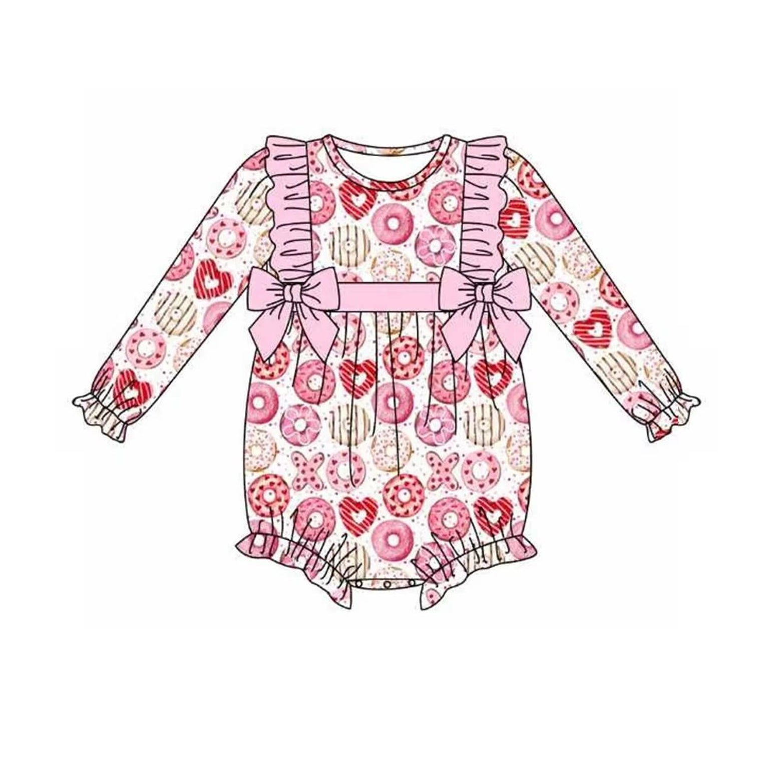 (Pre-order)LR2096 Donut Pink XO Print Baby Girls Valentine's Day Romper