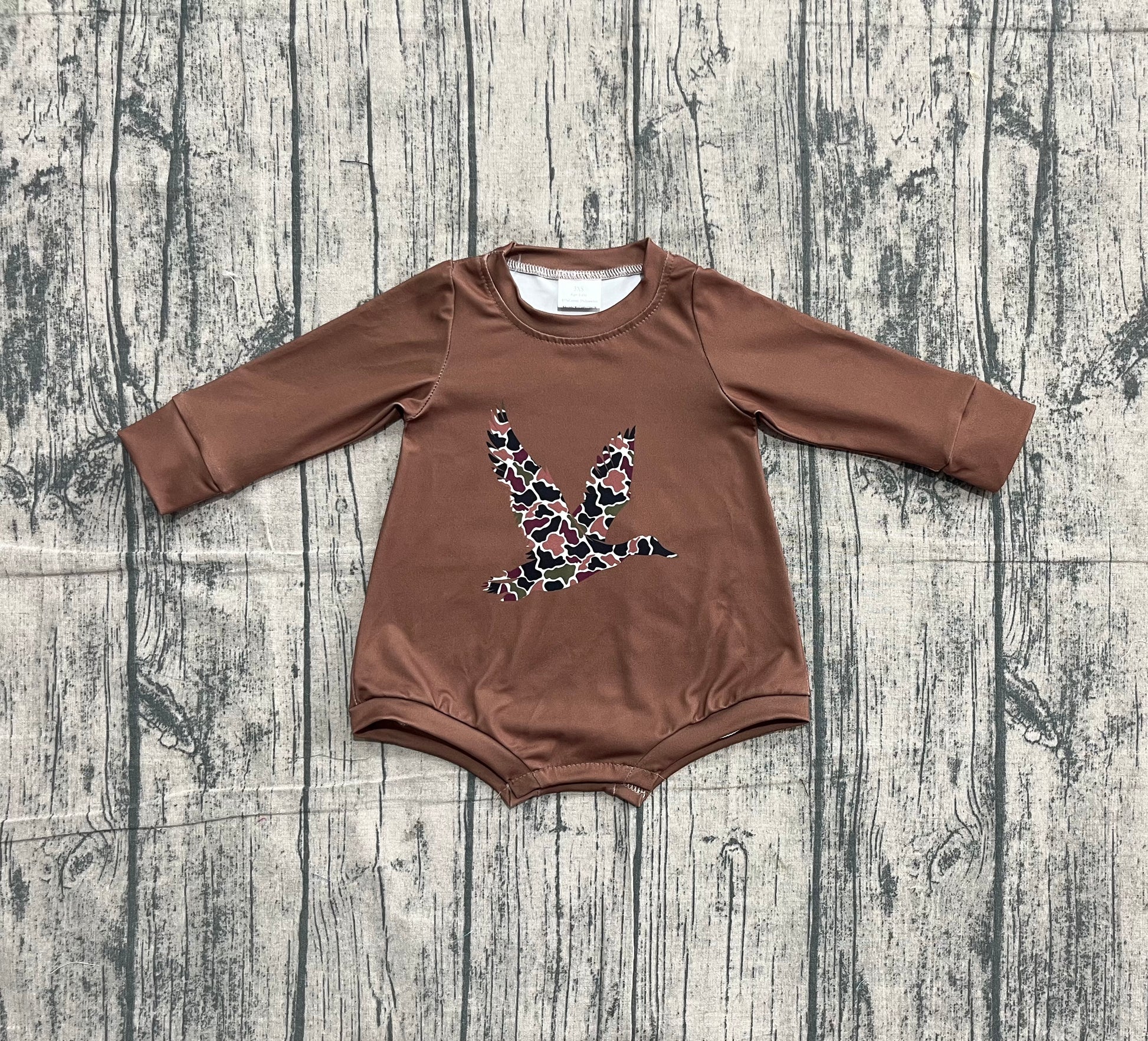 (Pre-order)LR2777 Camo Duck Brown Print Baby Girls Romper