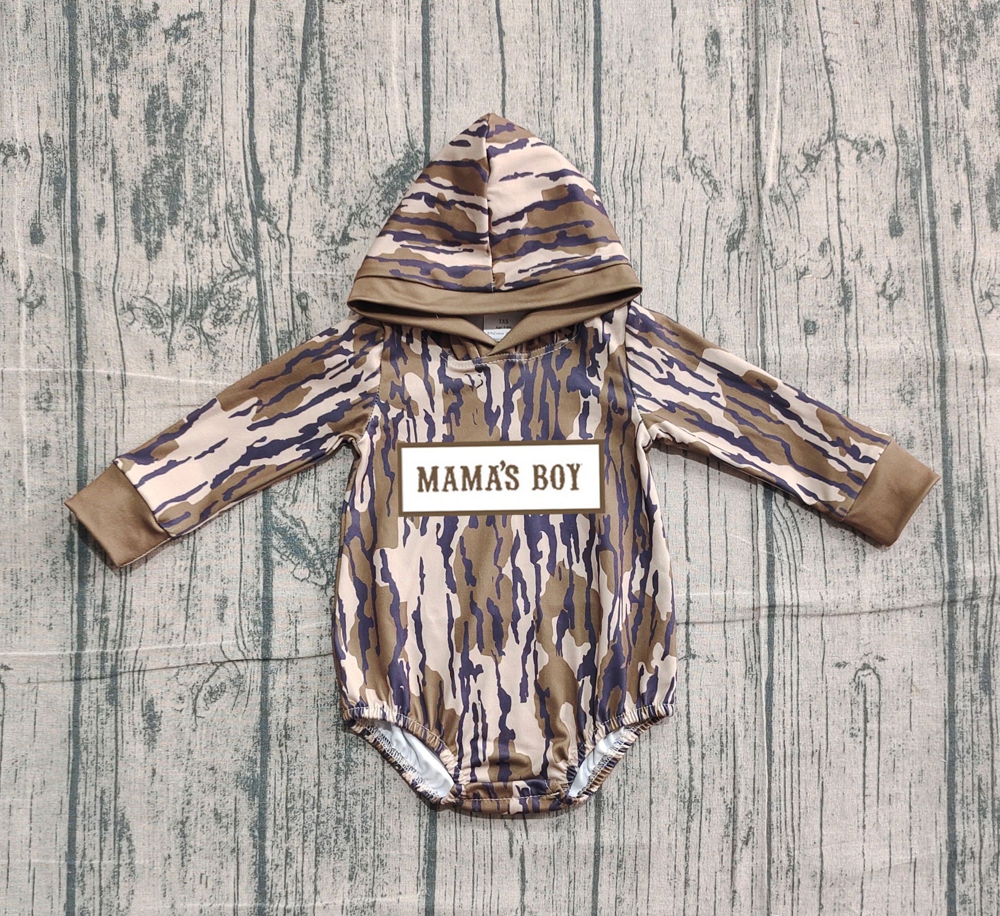 (Pre-order)LR2793 MAMA'S BOY Camo Print Baby Boys Hoodie Romper