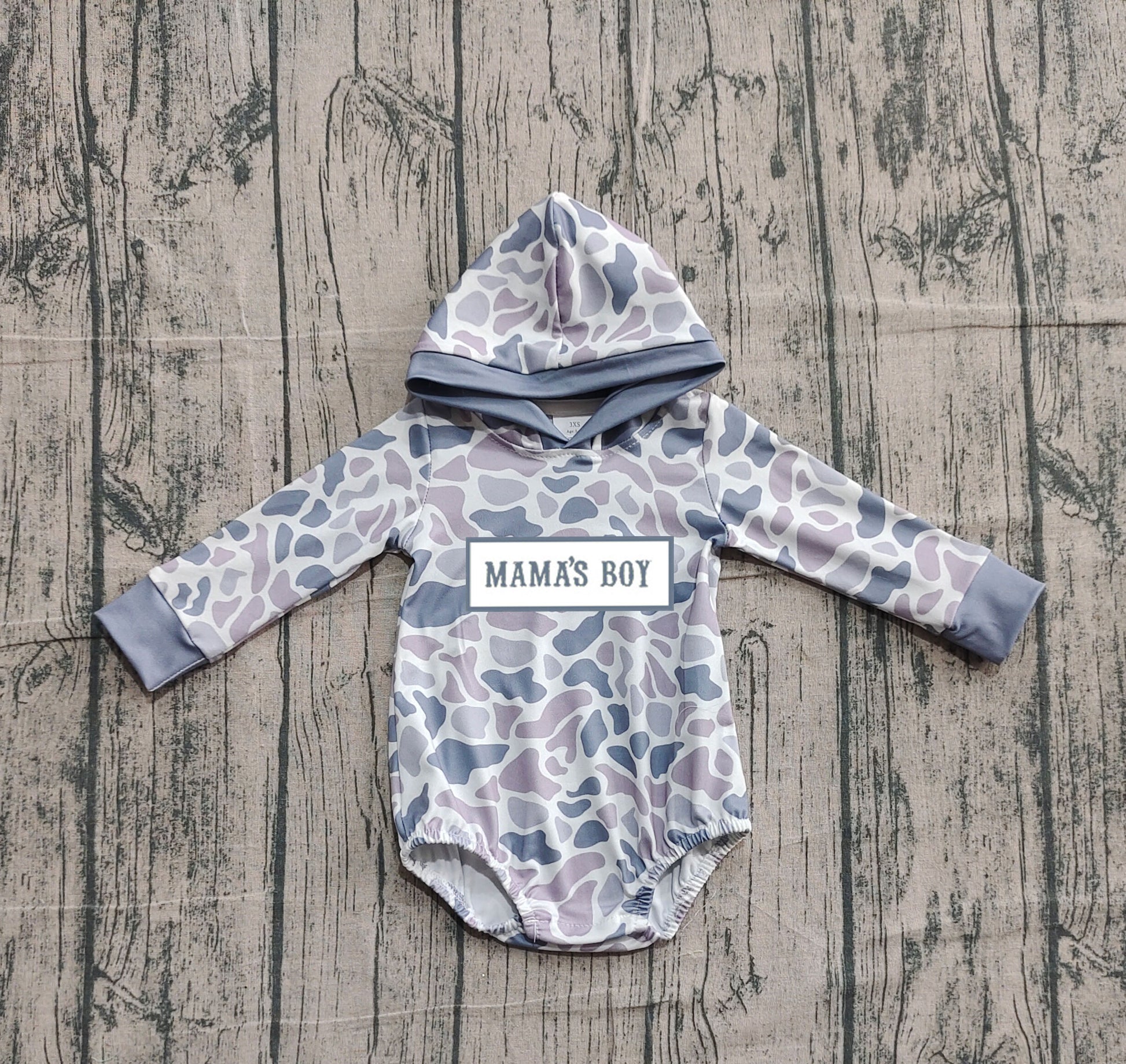 (Pre-order)LR2794 MAMA'S BOY Grey Camo Print Baby Boys Hoodie Romper