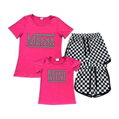 MAMA & MINI Vinyl Hot Pink Top Black Plaid Shorts Mom and Me Matching Summer Clothes Set