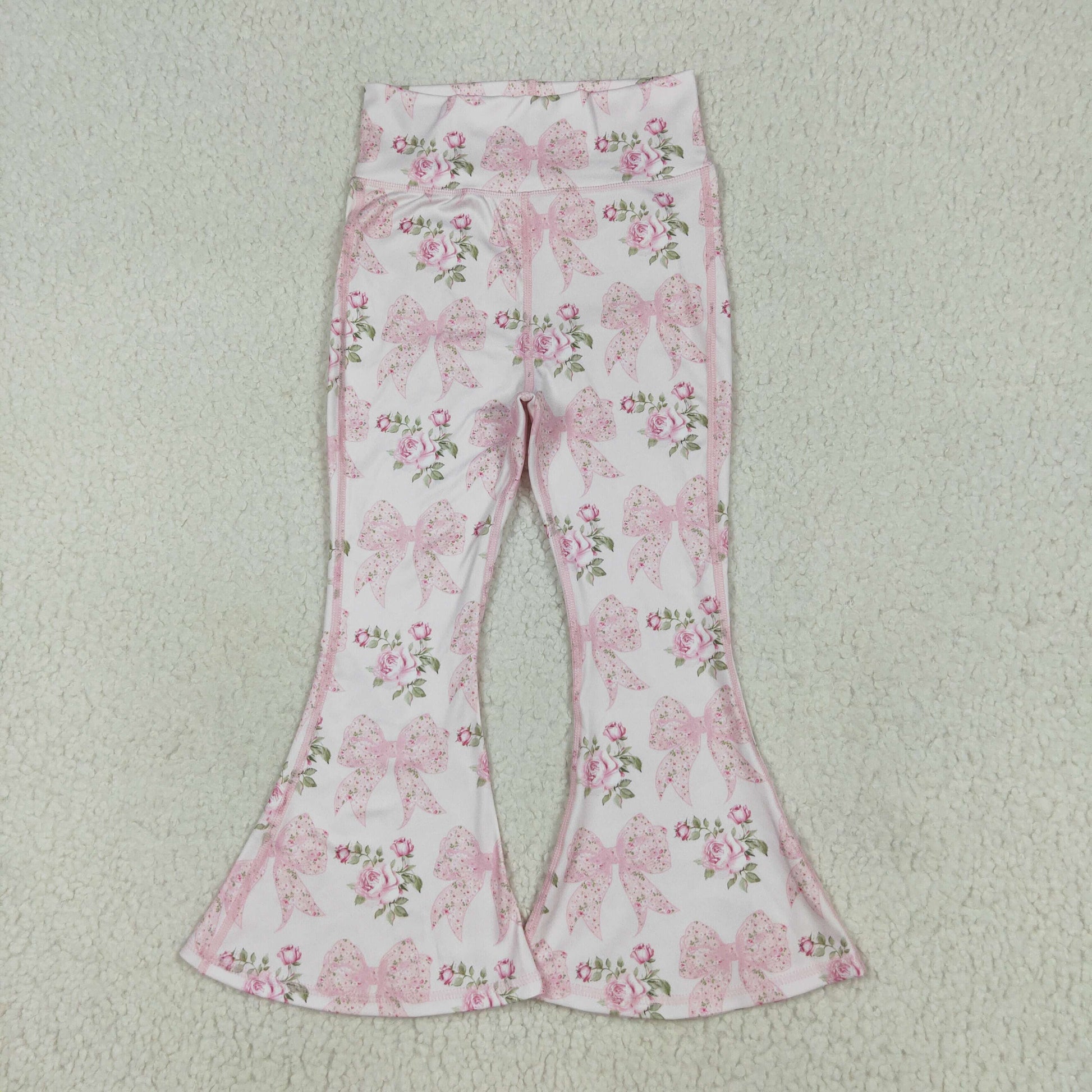 P0768 Flowers Bows Pink Girls Yoga Bell Bottom Pants
