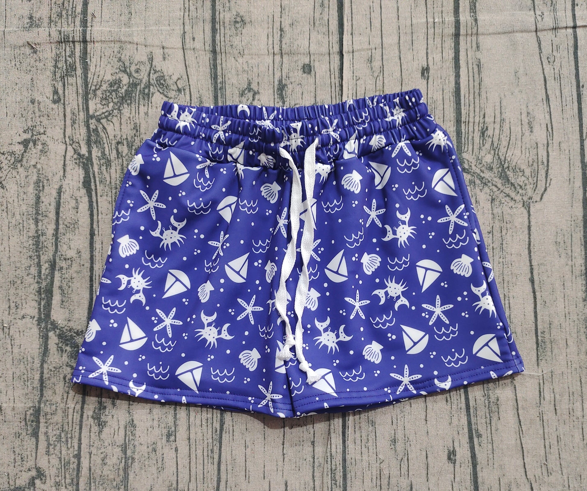 (Pre-order)S0587 Crab Navy Print Boys Summer Swim Trunks
