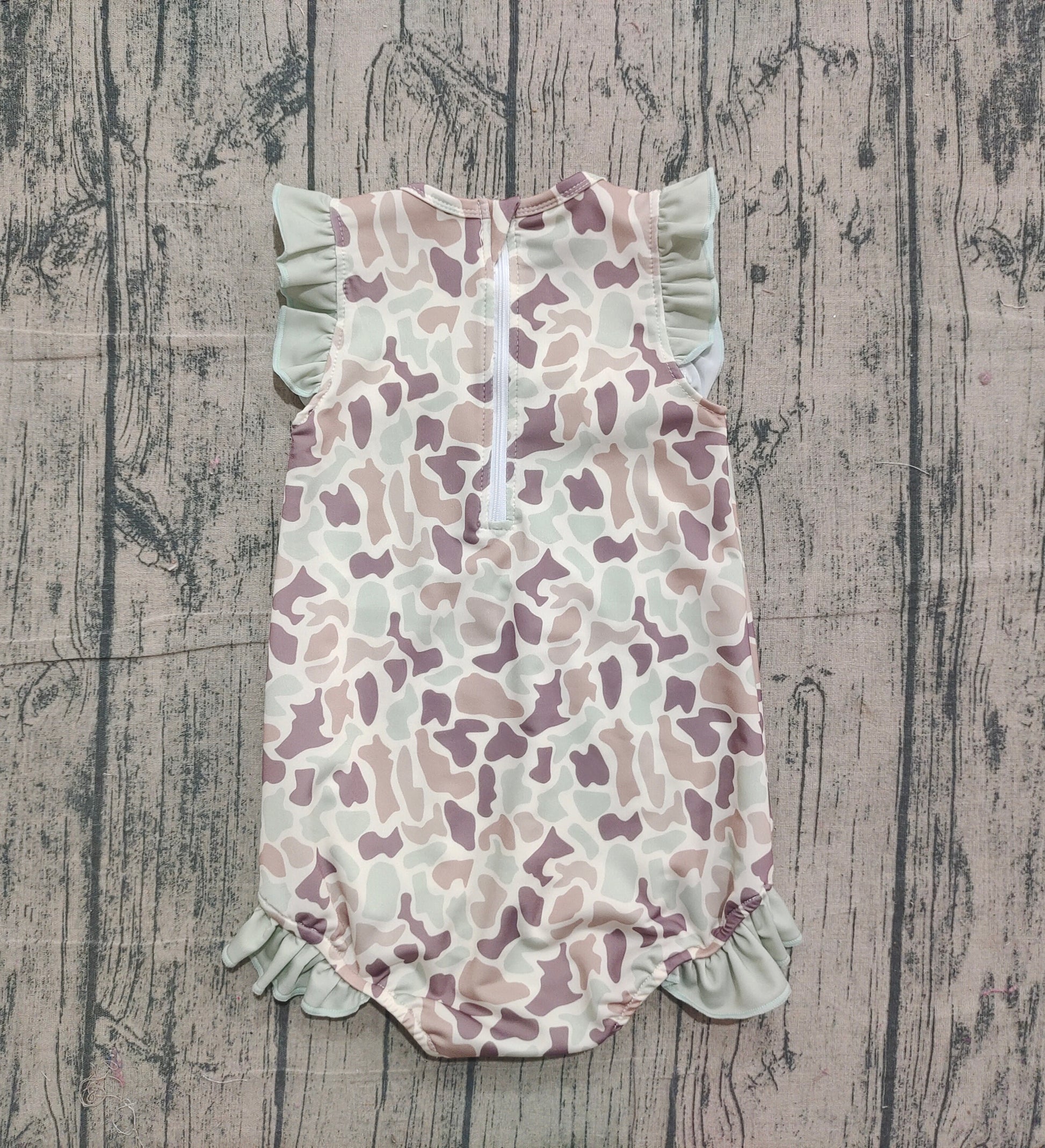 (Pre-order)S0595 Camo Print Girls Summer Ruffle 1 Piece Swimsuits