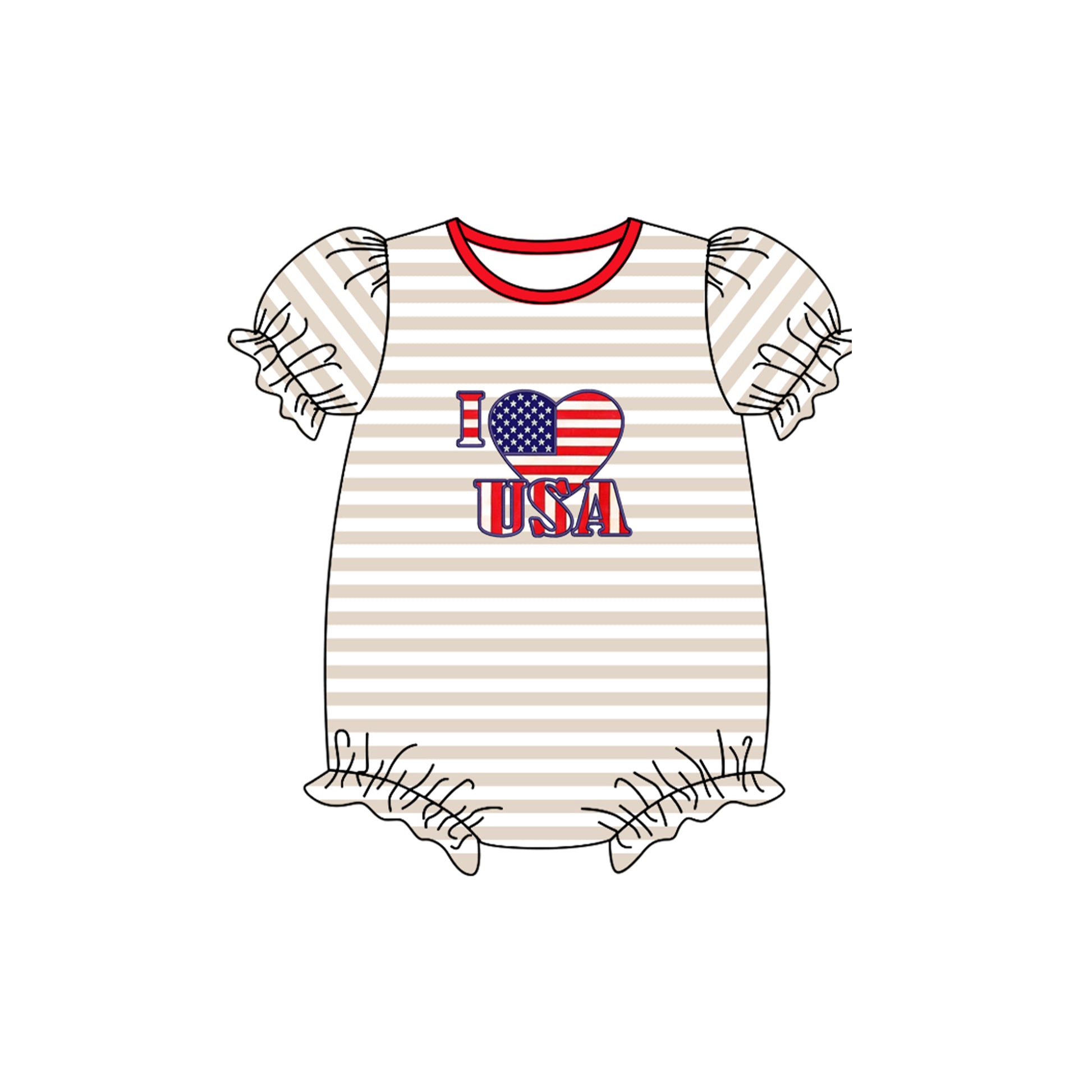 (Pre-order)SR0775 I LOVE USA Heart Flag Print Baby Girls 4th of July Romper