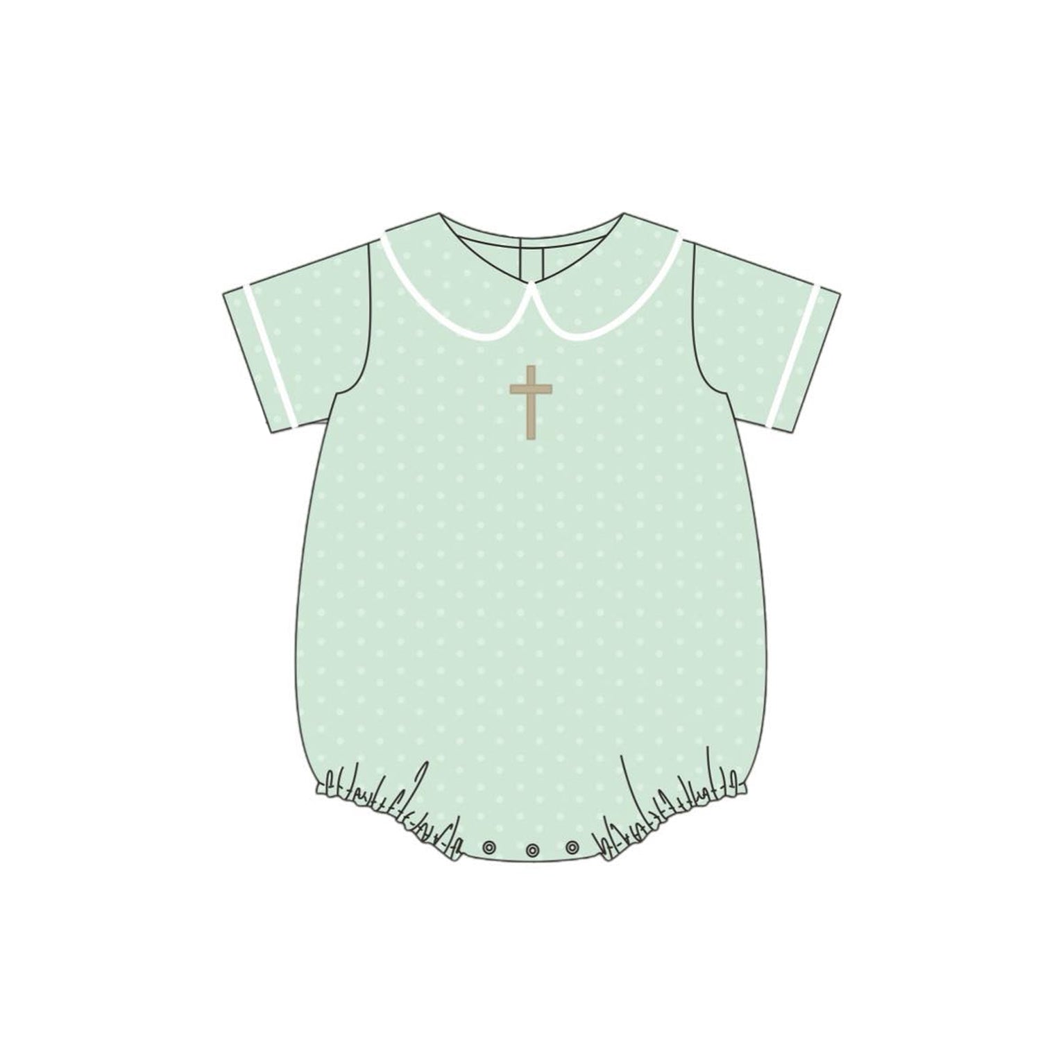 (Pre-order)SR3269 Cross Green Dots Print Baby Boys Easter Romper