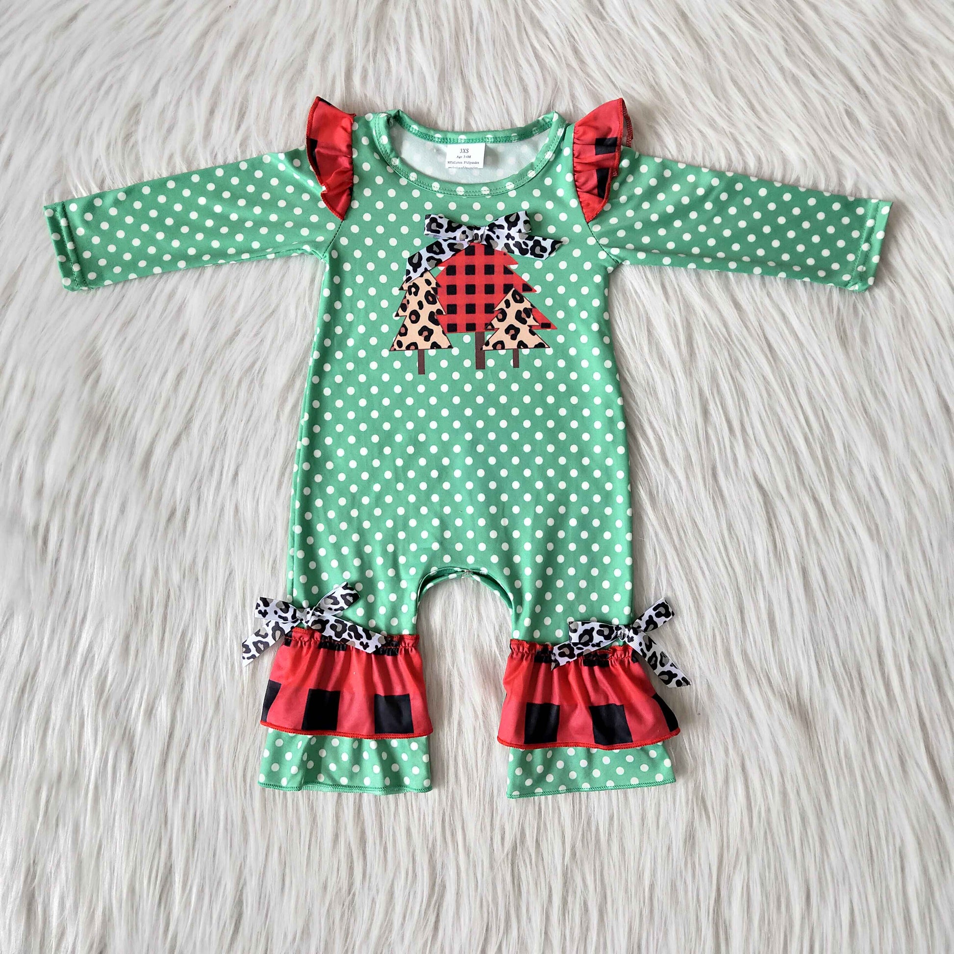 (Promotion) 6 A1-26-2 Christmas Tree Green Dots Baby Girls Romper