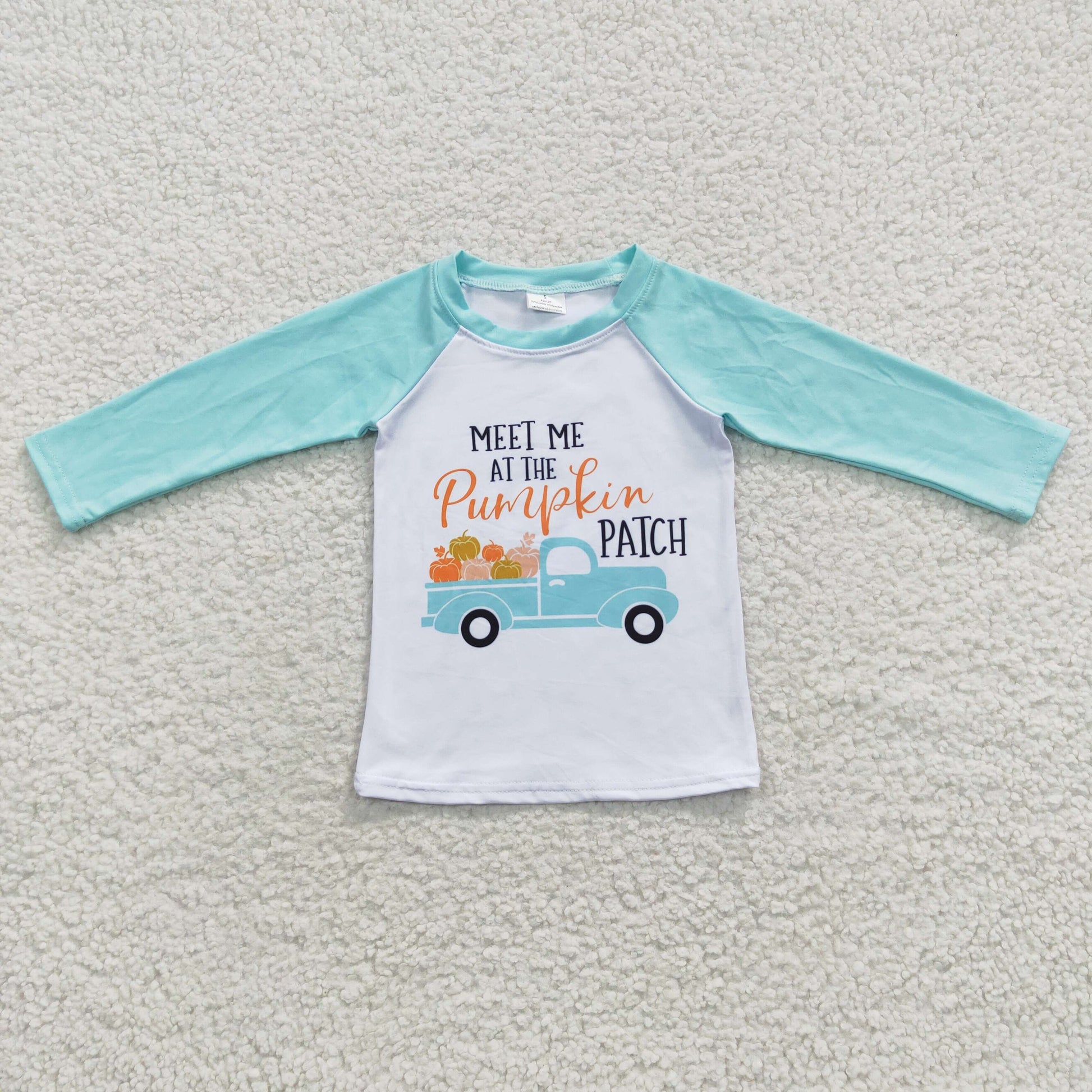 (Promotion) 6A32-3 Meet me at the pumpkin patch boys blue fall pumpkin shirts top