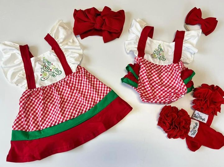 (Promotion) E3-19 Christmas Tree Red Plaid Print Girls Flutter Sleeve Knee Length Dress