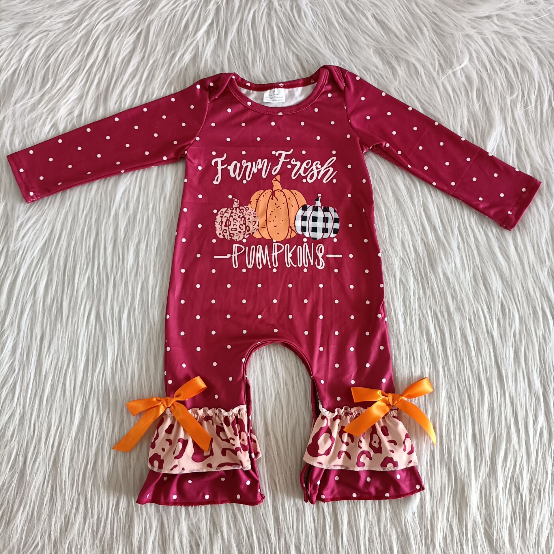 (Promotion) Pumpkin Dots Baby Girls Fall Romper 6 A30-16