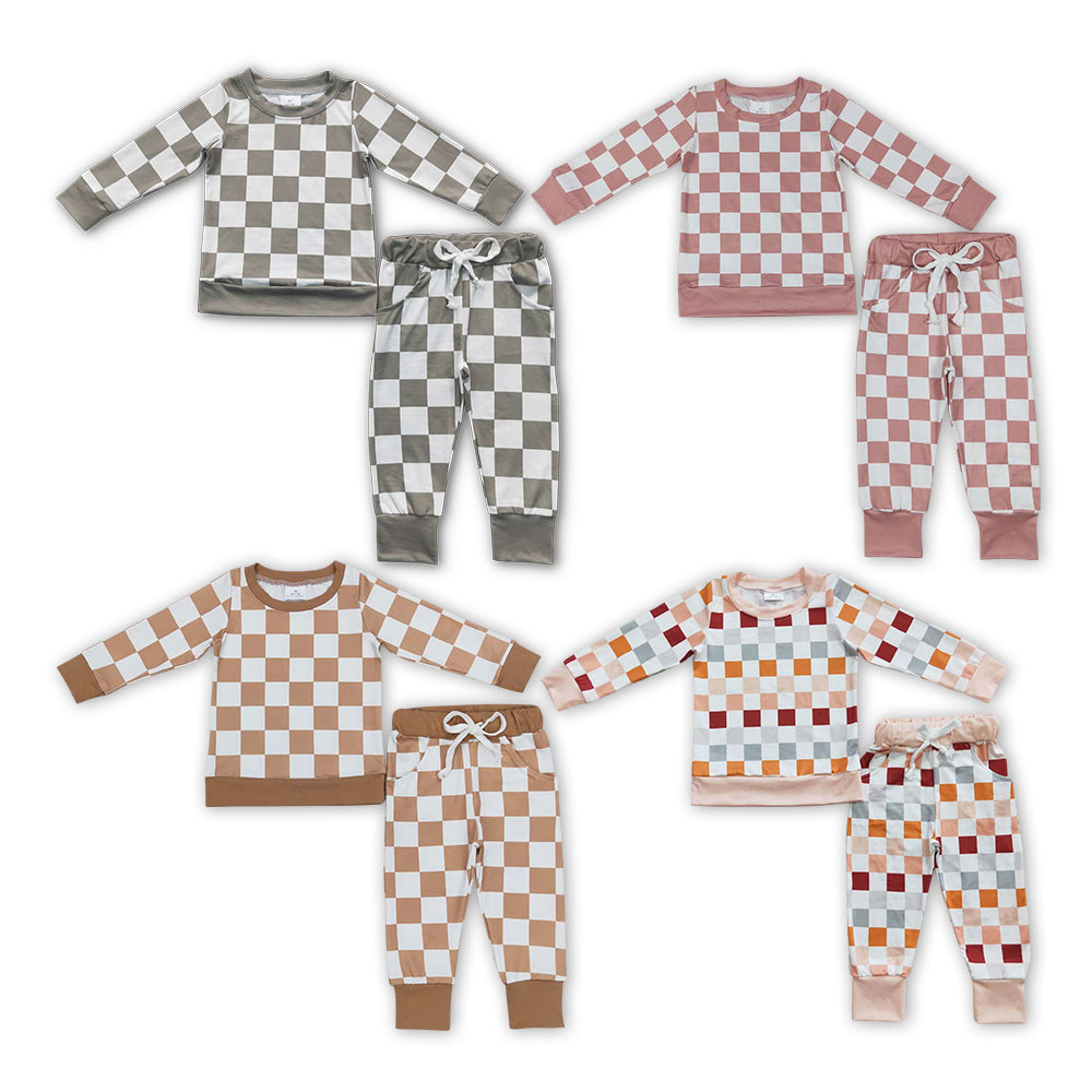 (Promotion)4 Colors Plaid Print Kids Fall Pajamas Clothes Set Sibling Wear