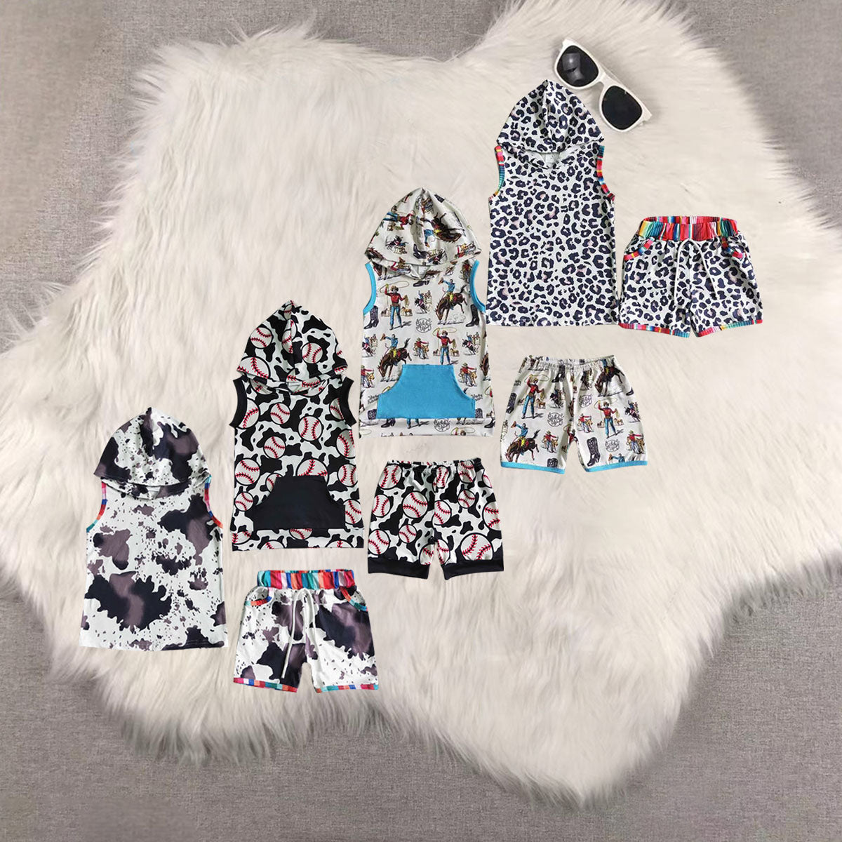 (Promotion)4 Print Boy's hooded shorts summer outfits Brothers Wear