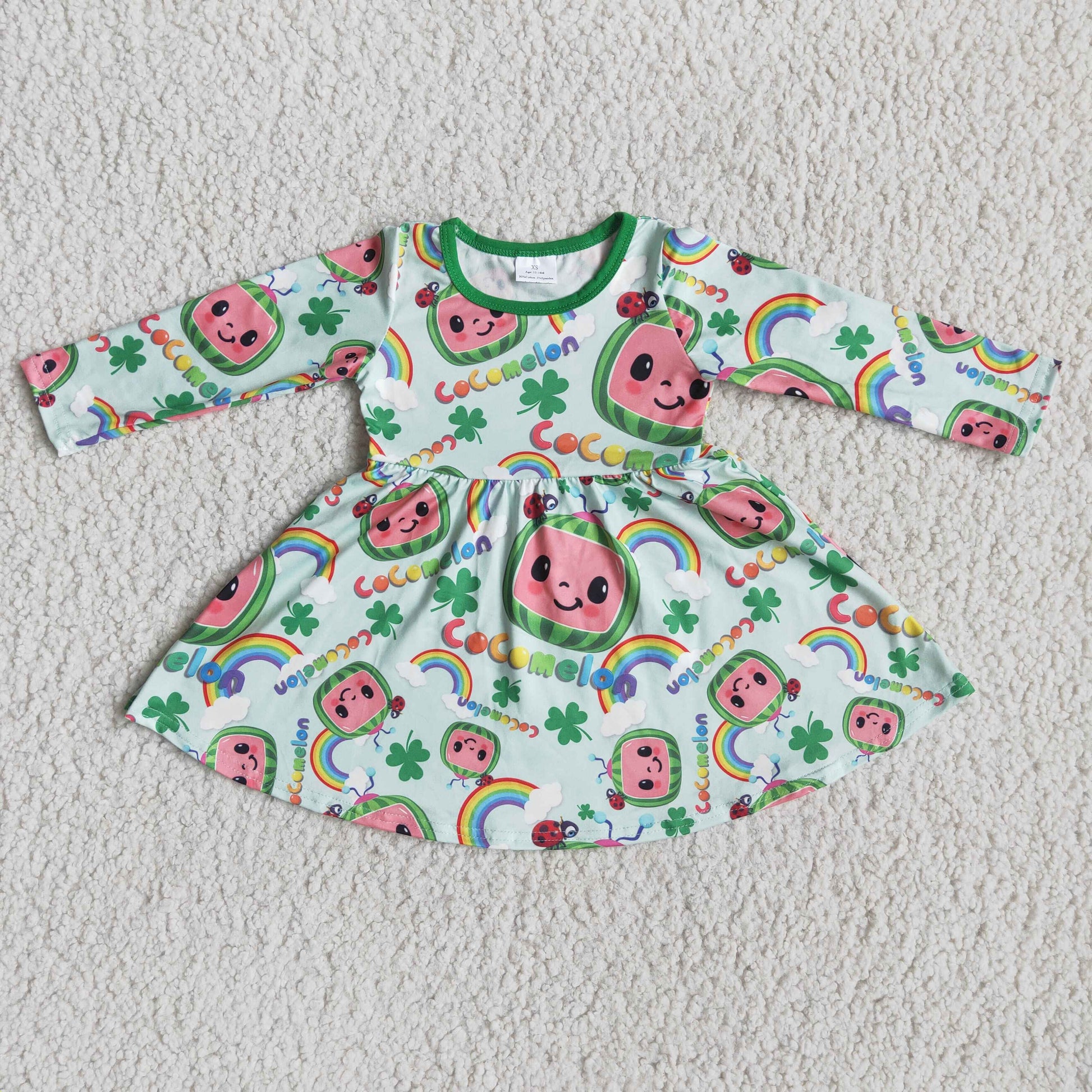 (Promotion)6 A11-26Long sleeve knee length St. Patrick's Day dress