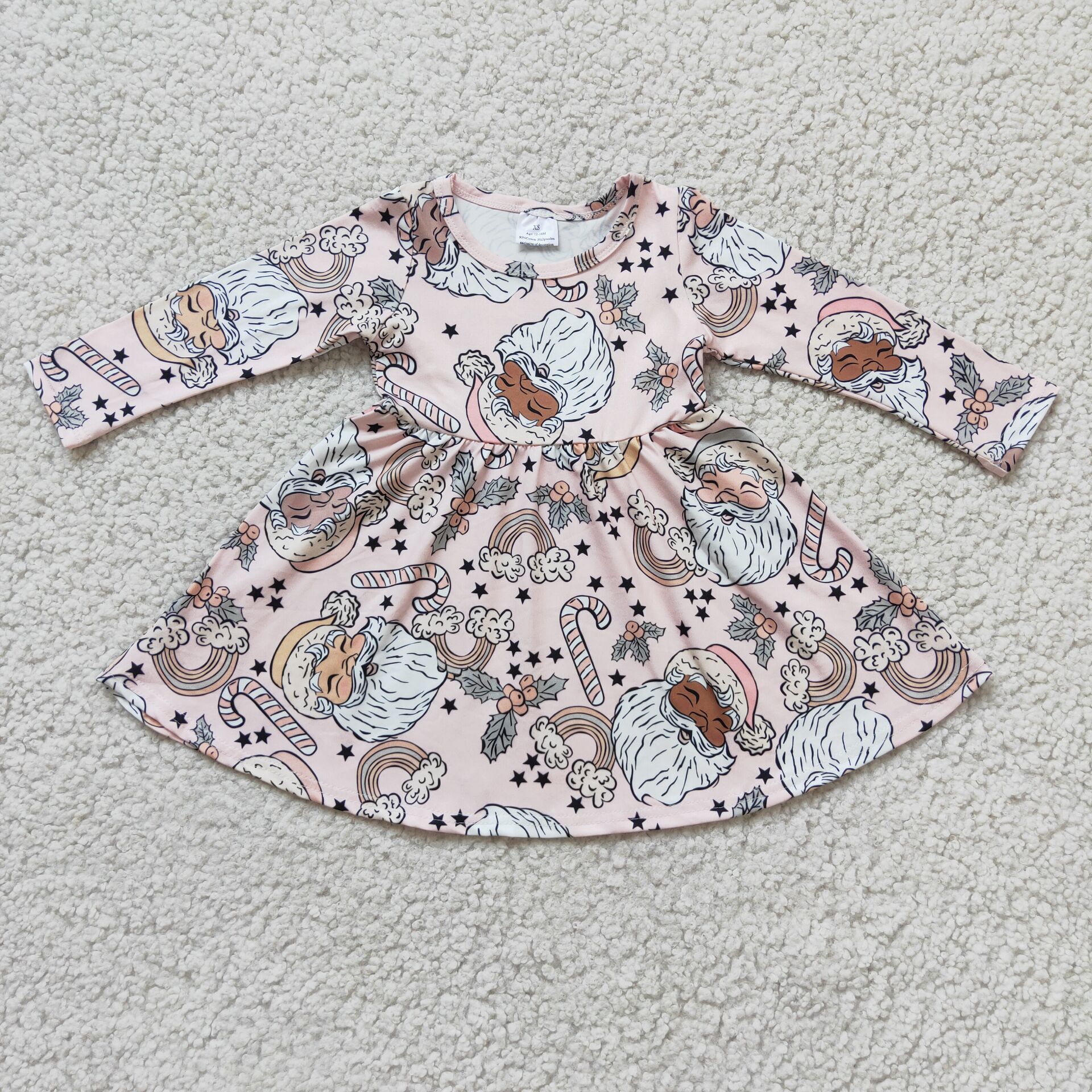 (Promotion)6 A9-3 Santa Candy Cane Flowers Rainbow Print Girls Knee Length Christmas Dress