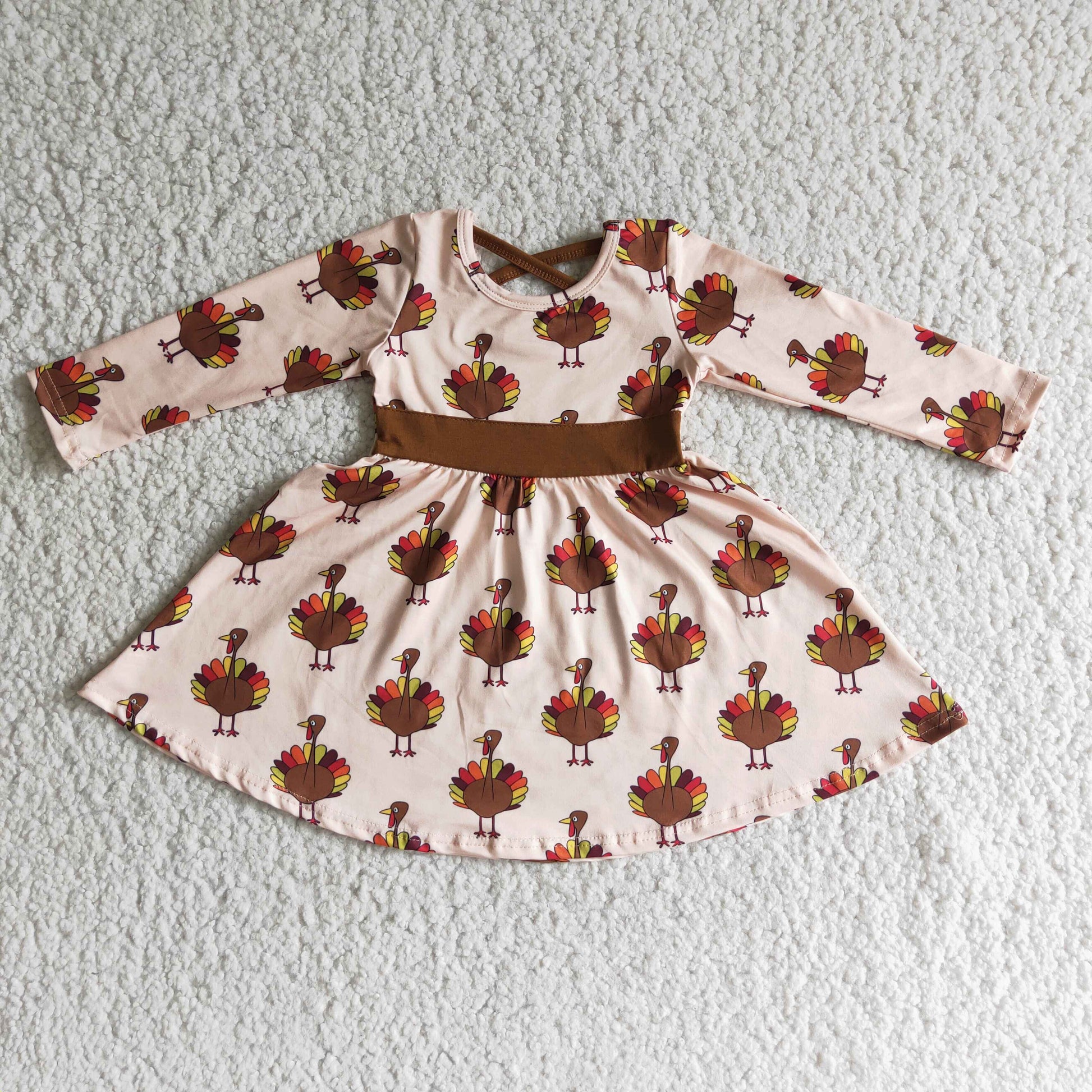 (Promotion)6 C10-19 Turkey Print Girls Knee Length Thanksgiving Dress