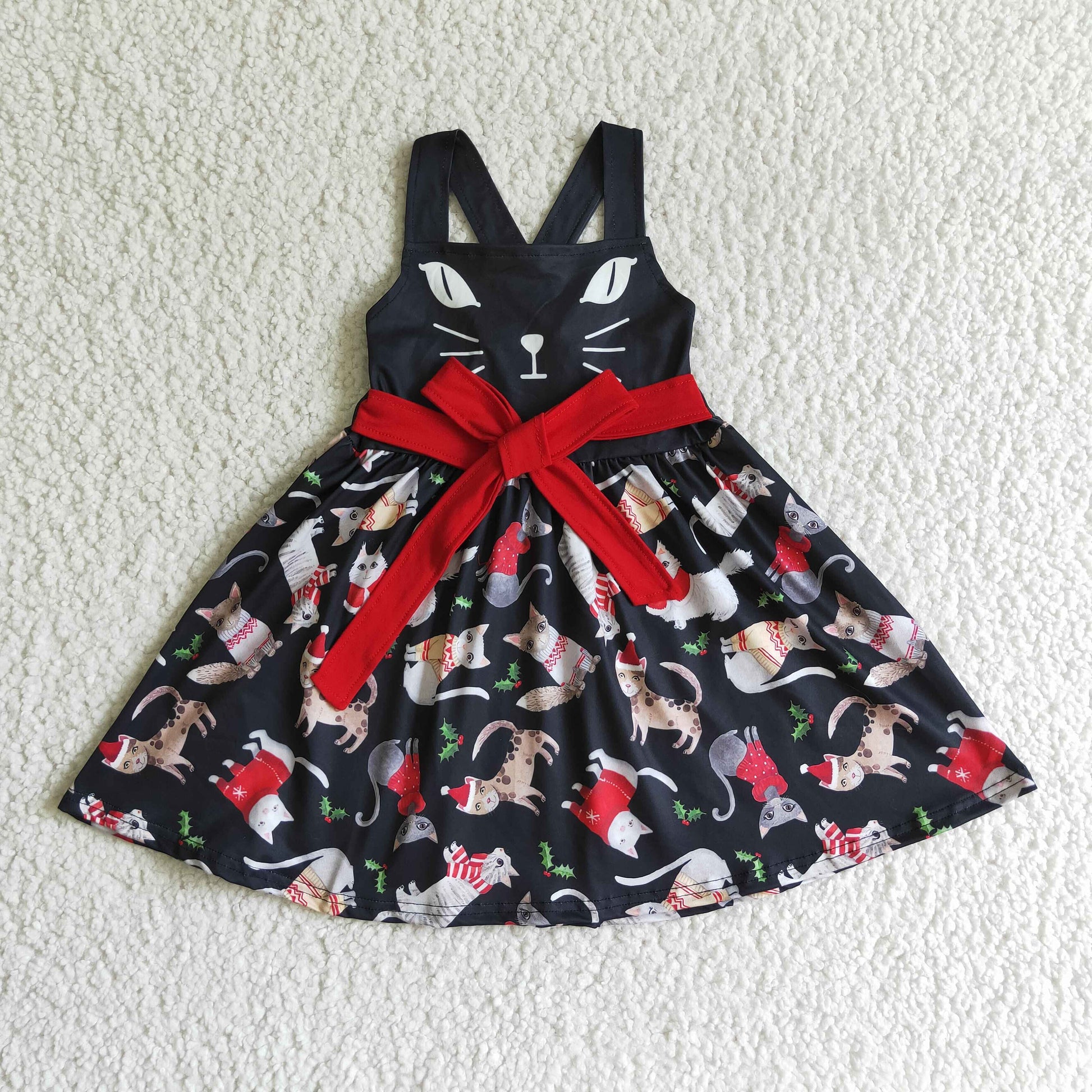 (Promotion)Cats Holly Print Girls Christmas Dress GSD0140
