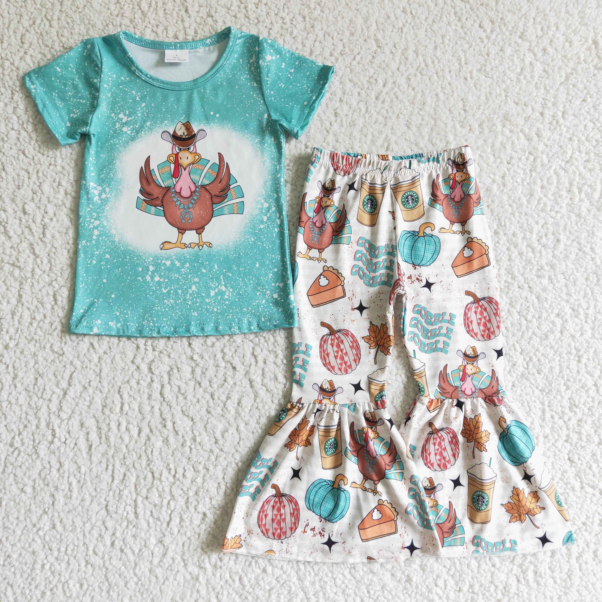 (Promotion)Girls blue turkey print Thanksgiving outfit GSPO0195