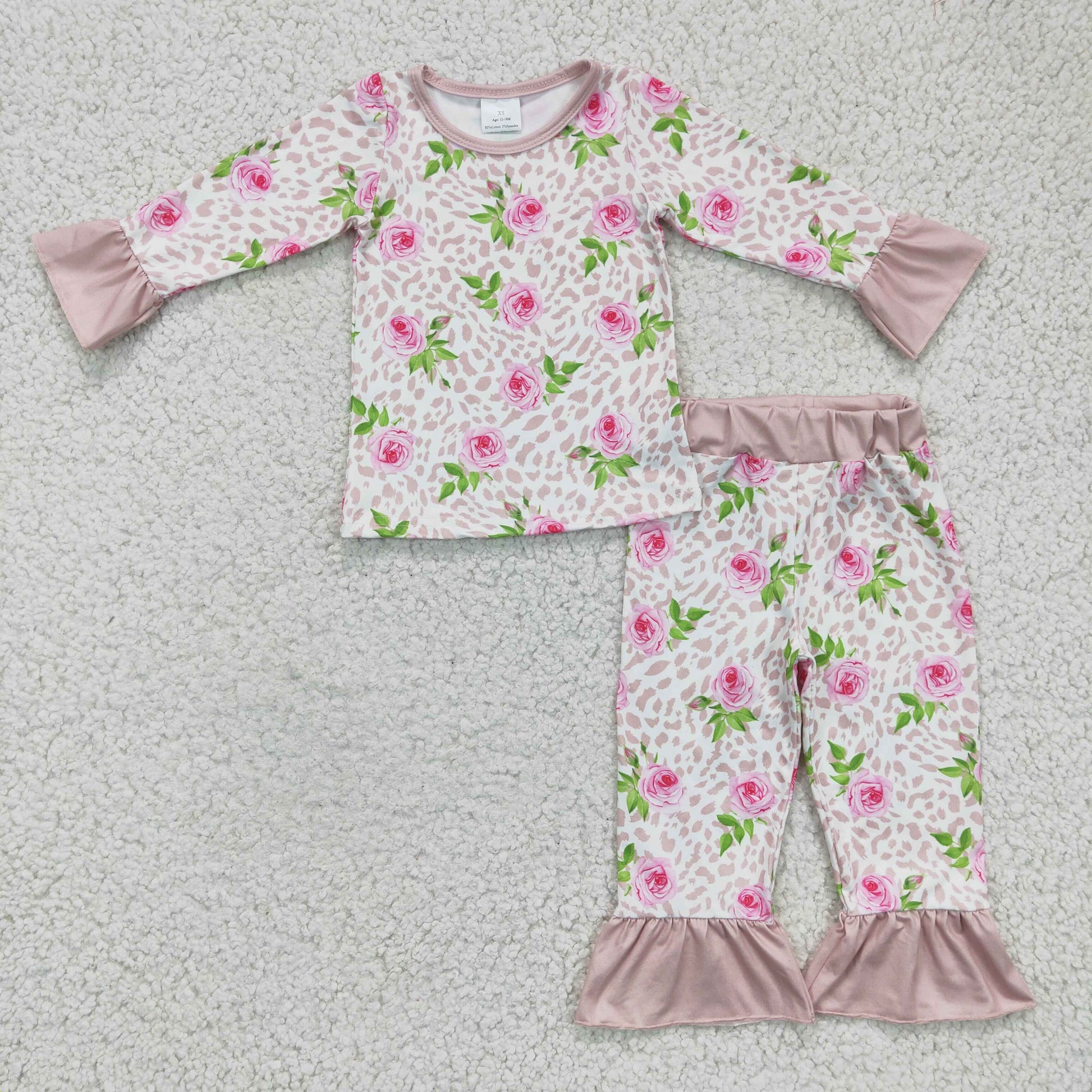 (Promotion)Girls leopard floral print pajama set GLP0367