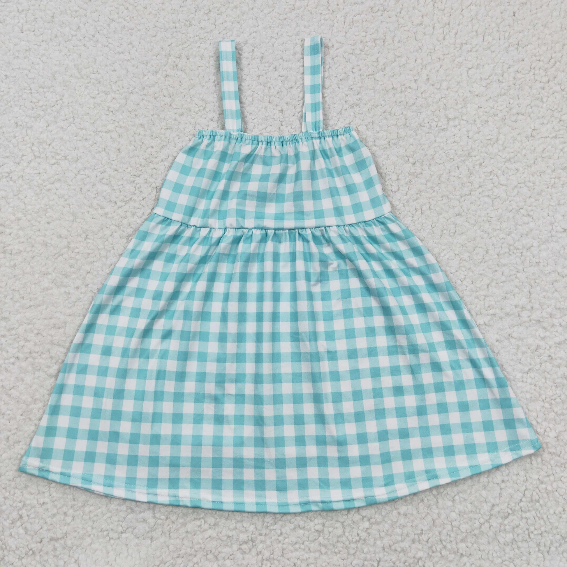 (Promotion)GSD0269 Girls blue plaids farm print embroidery summer dress