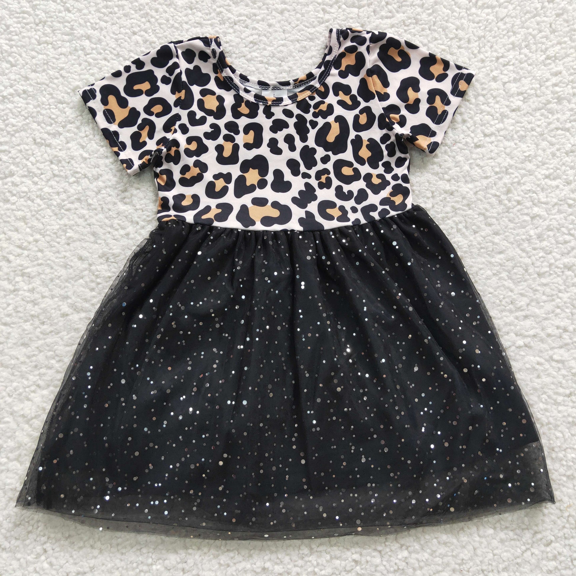 (Promotion)GSD0329 Girls leopard top black tulle dress