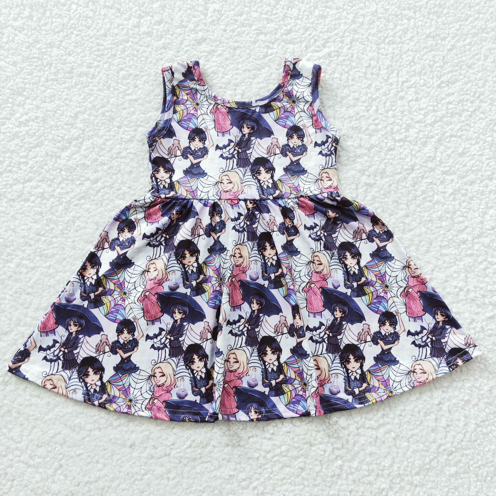 (Promotion)GSD0335 Girls cartoon Wednesday design sleeveless summer dress