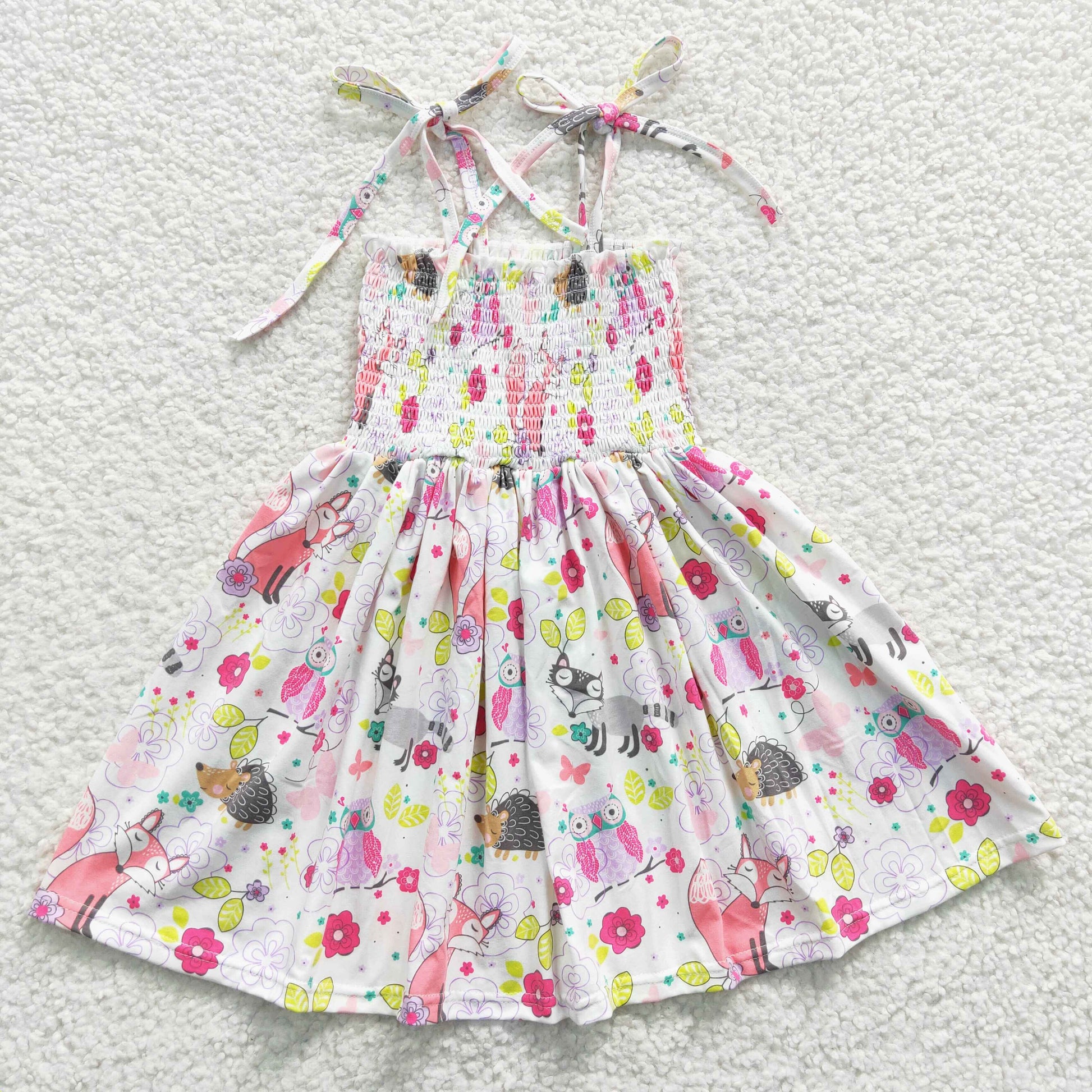 (Promotion)GSD0352 Girls spaghetti strap fall animal print smocked dress