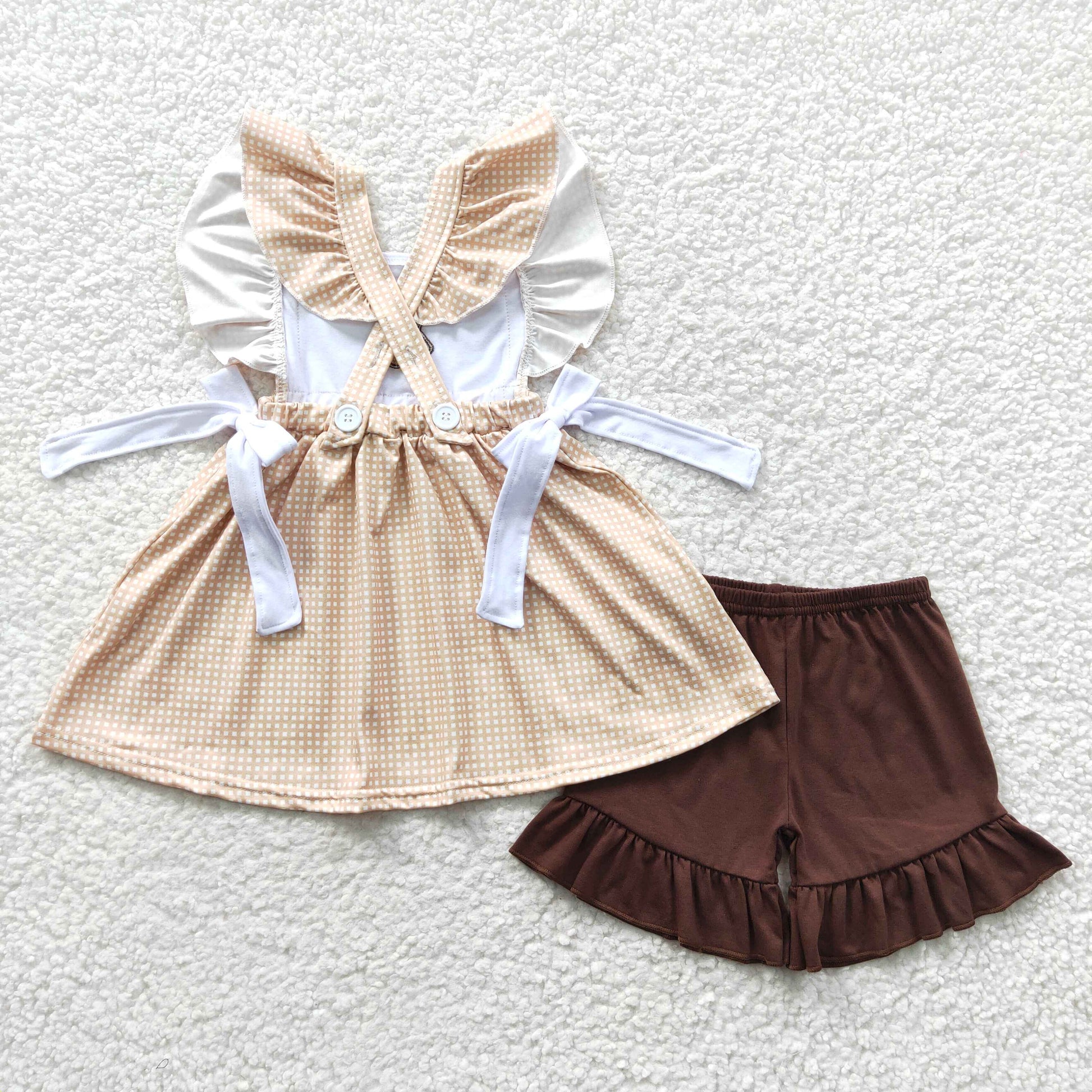 (Promotion)GSSO0233 Girls brown cow print summer shorts outfits