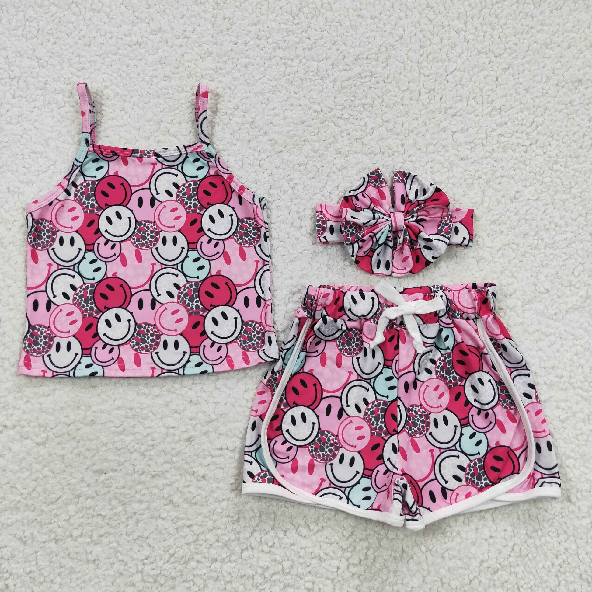 (Promotion)GSSO0340 Girls smiling face pink shorts summer clothes sets