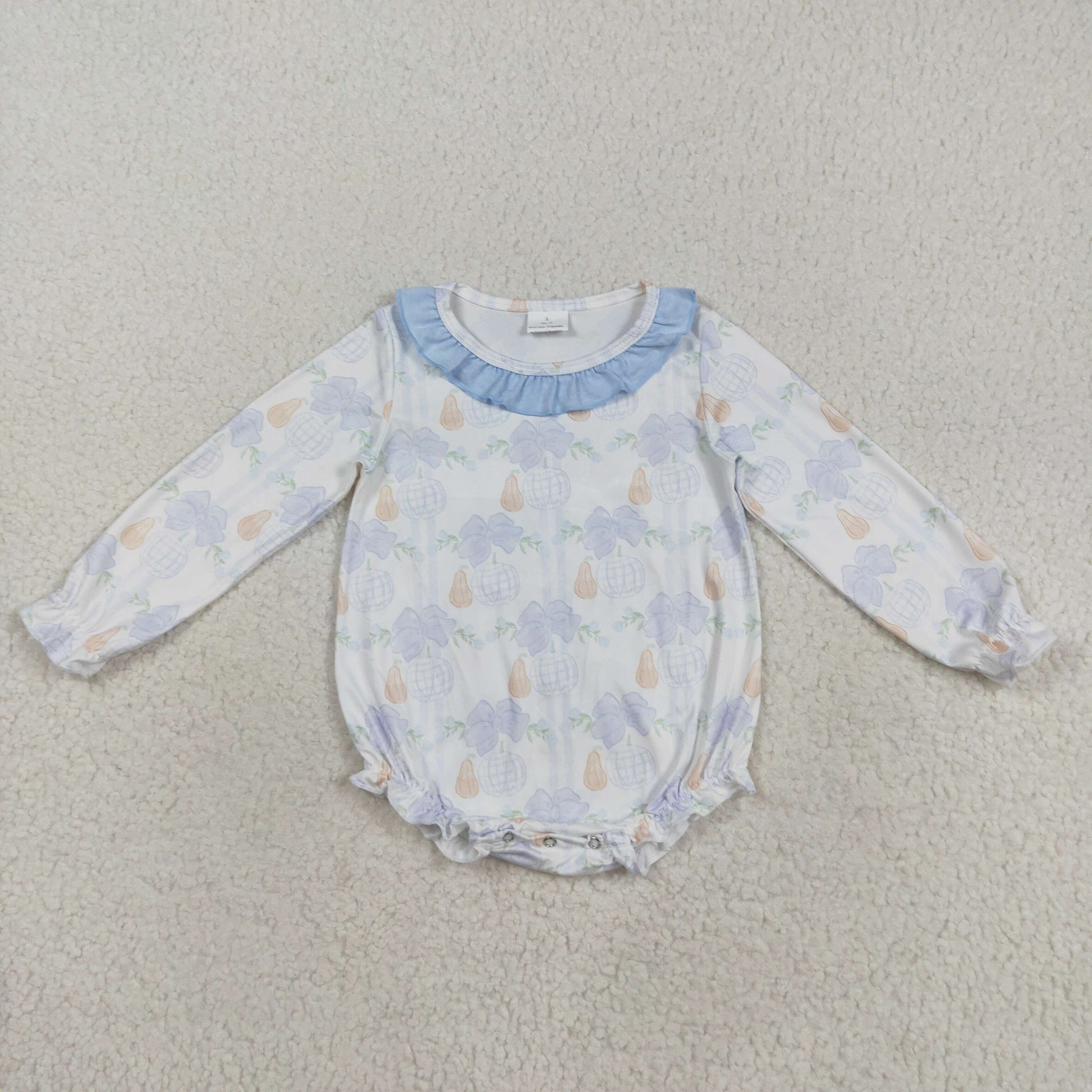 Pumpkin Blue Bows Print Girls Fall Clothes Sisters Matching Wear