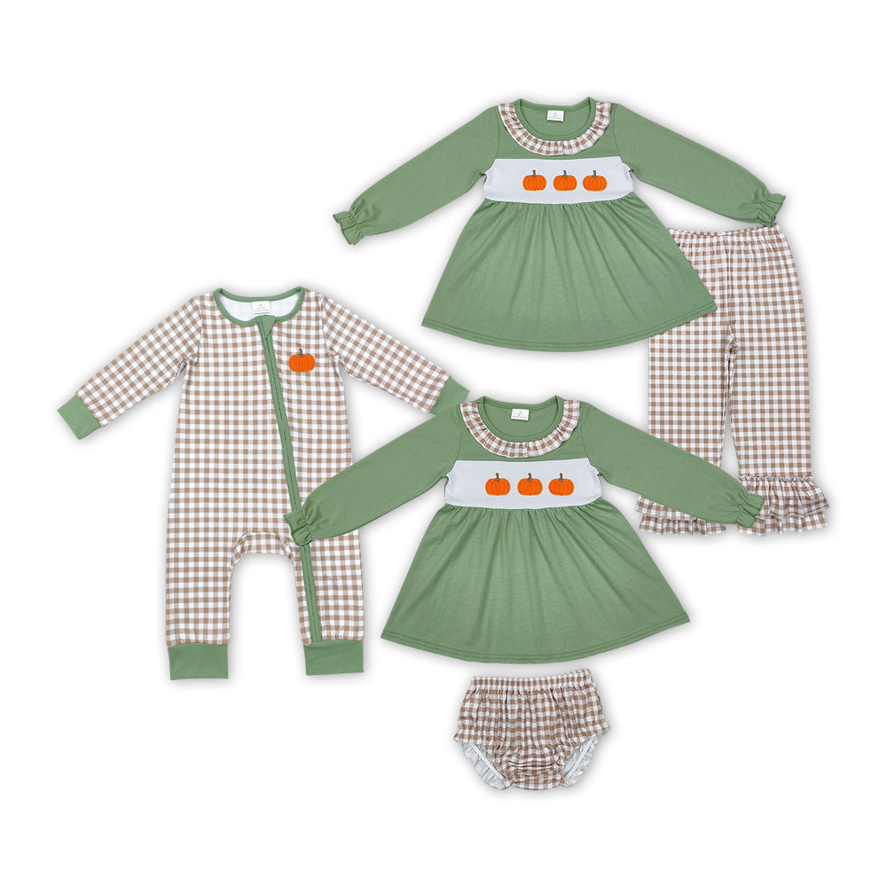 Pumpkin Embroidery Plaid Print Sisters Fall Matching Clothes