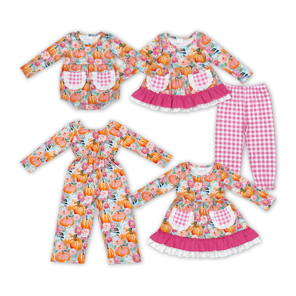 Pumpkin Flowers Plaid Print Pockets Sisters Fall Matching Clothes