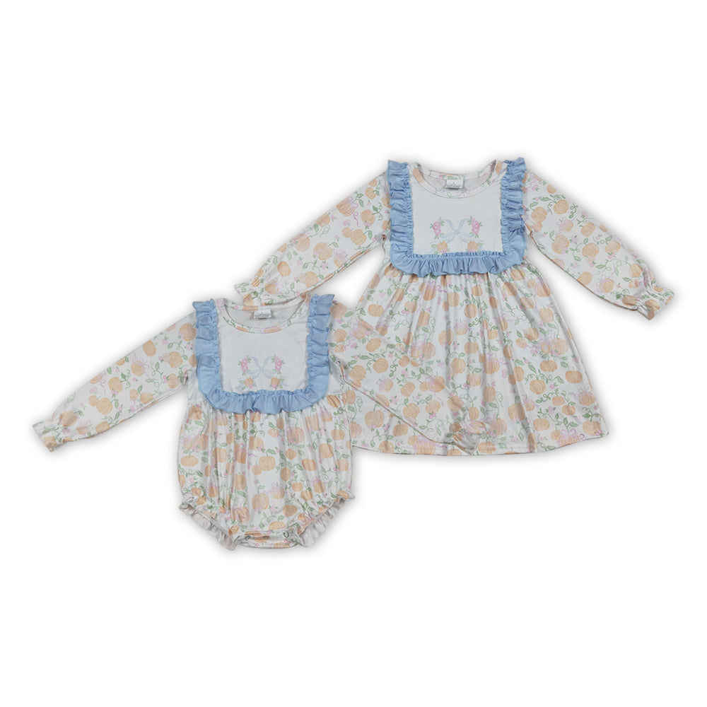 Pumpkin Flowers Print Girls Fall Clothes Sisters Matching Wear