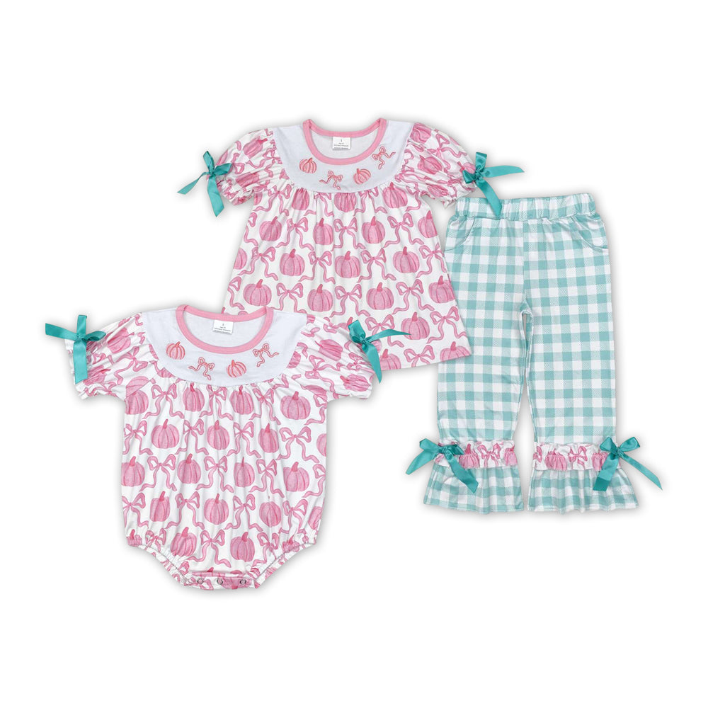 Pumpkin Pink Bows Embroidery Sisters Fall Matching Clothes