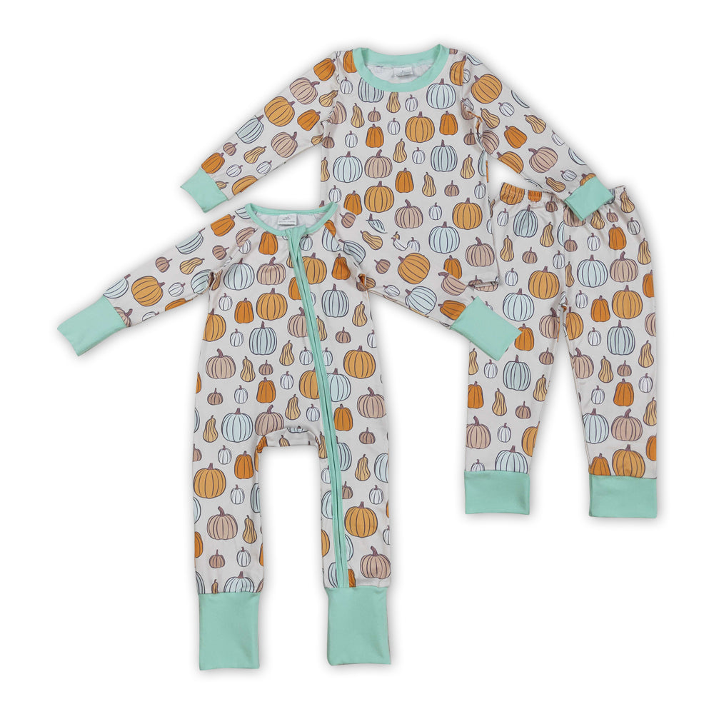 Pumpkin Print Kids Fall Pajamas Matching Clothes