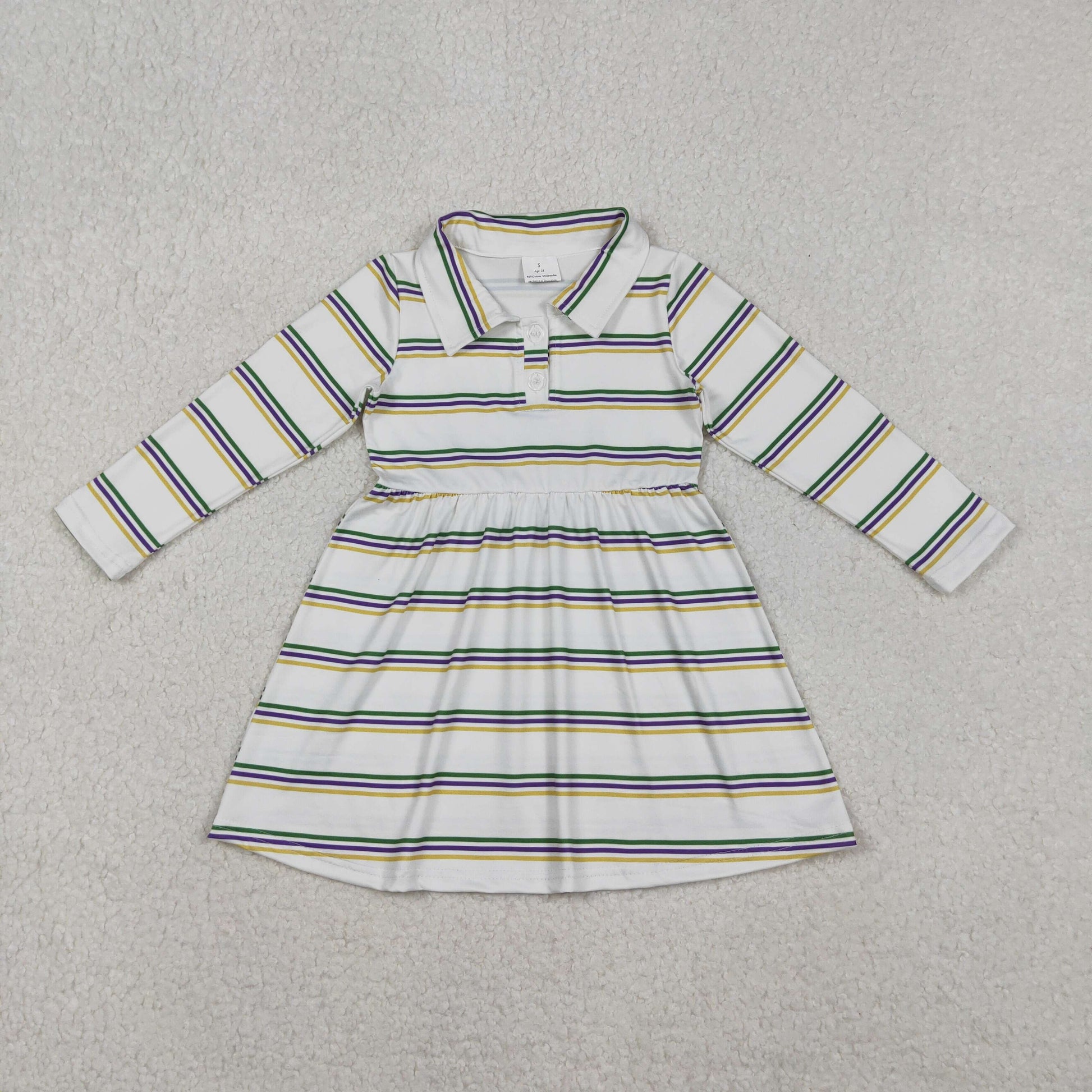 Purple Stripes White Print Kids Mardi Gras Clothes Sibling Matching Wear