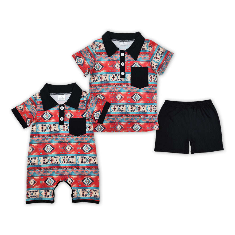 Red Aztec Western Print Brothers Summer Matching Clothes