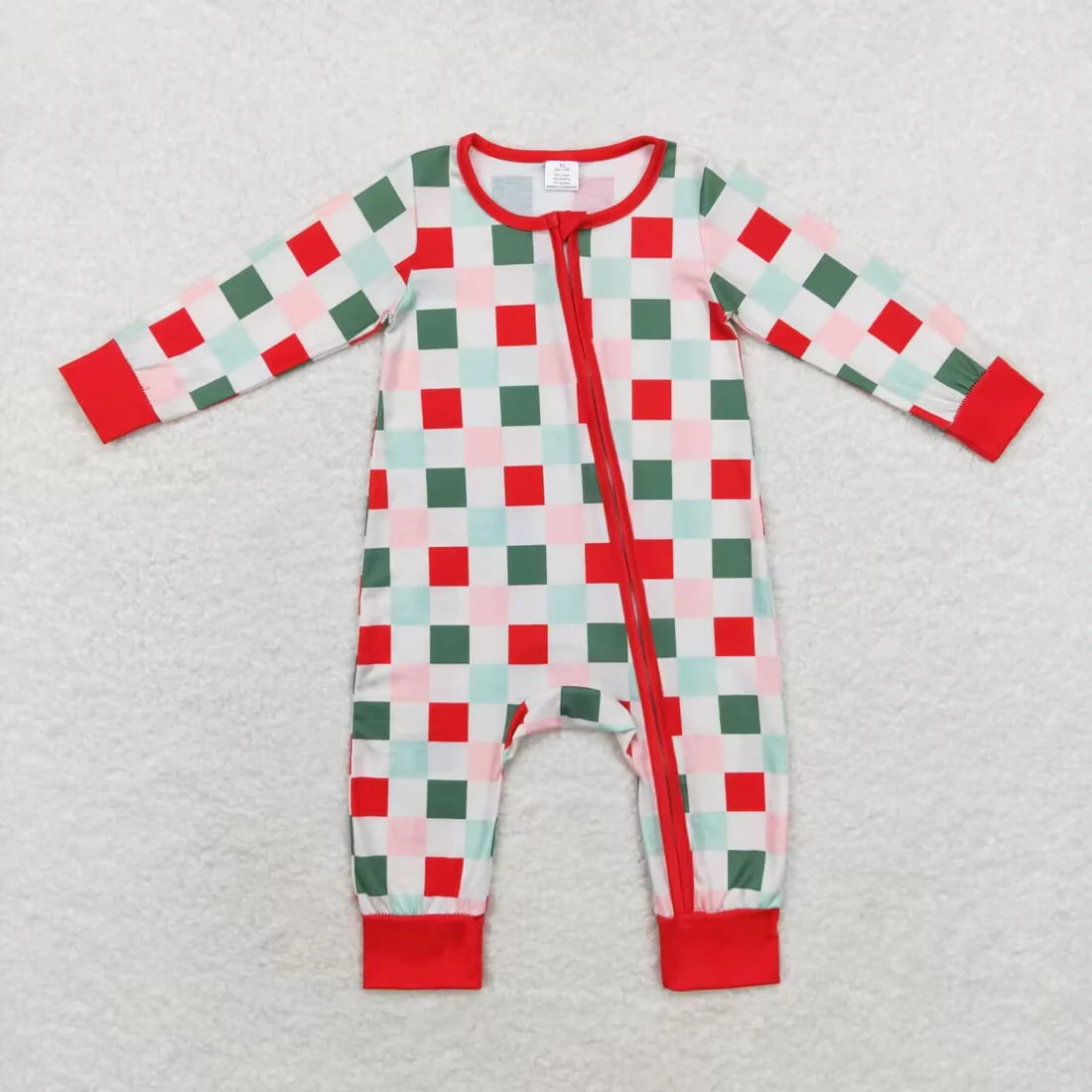 Red Green Pink Plaid Print Christmas Family Matching Pajamas Clothes