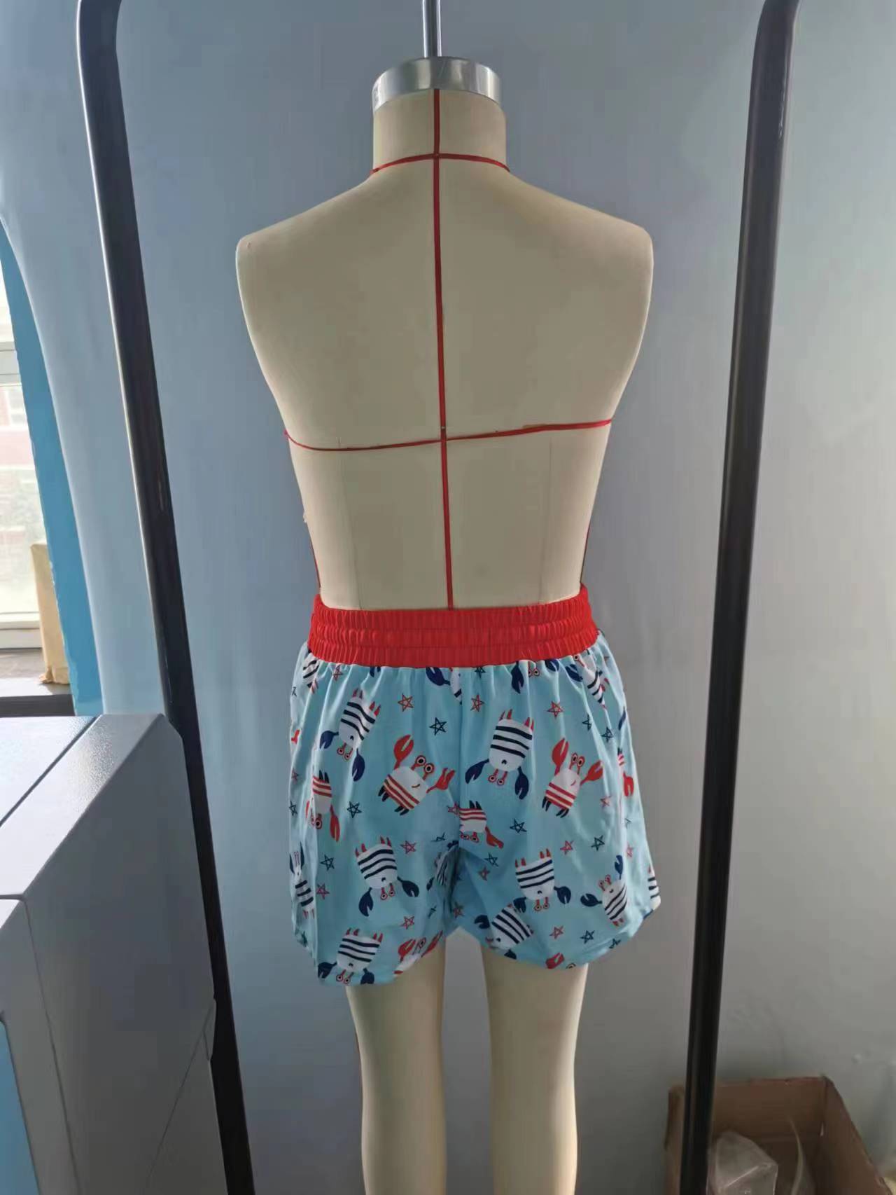 S0187 Boys Blue Crab Print 4th of July Swim Trunks