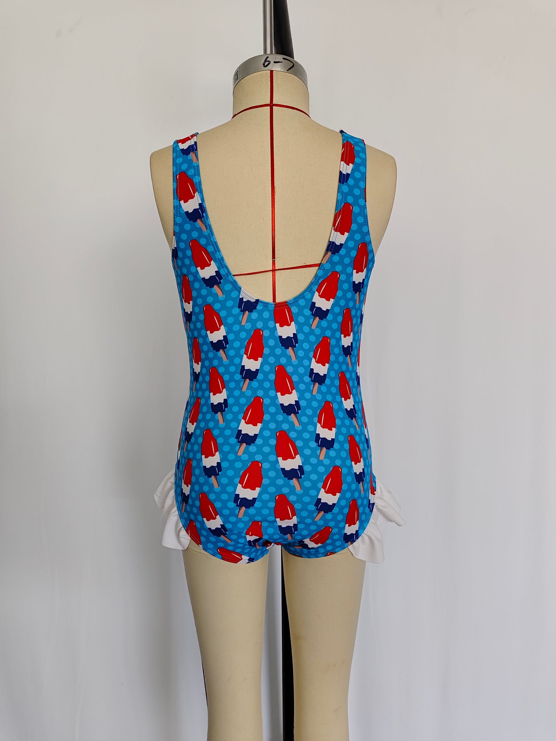 S0217 Popsicle Blue Polka Dots Print 1 Piece Girls 4th of July Swimsuits