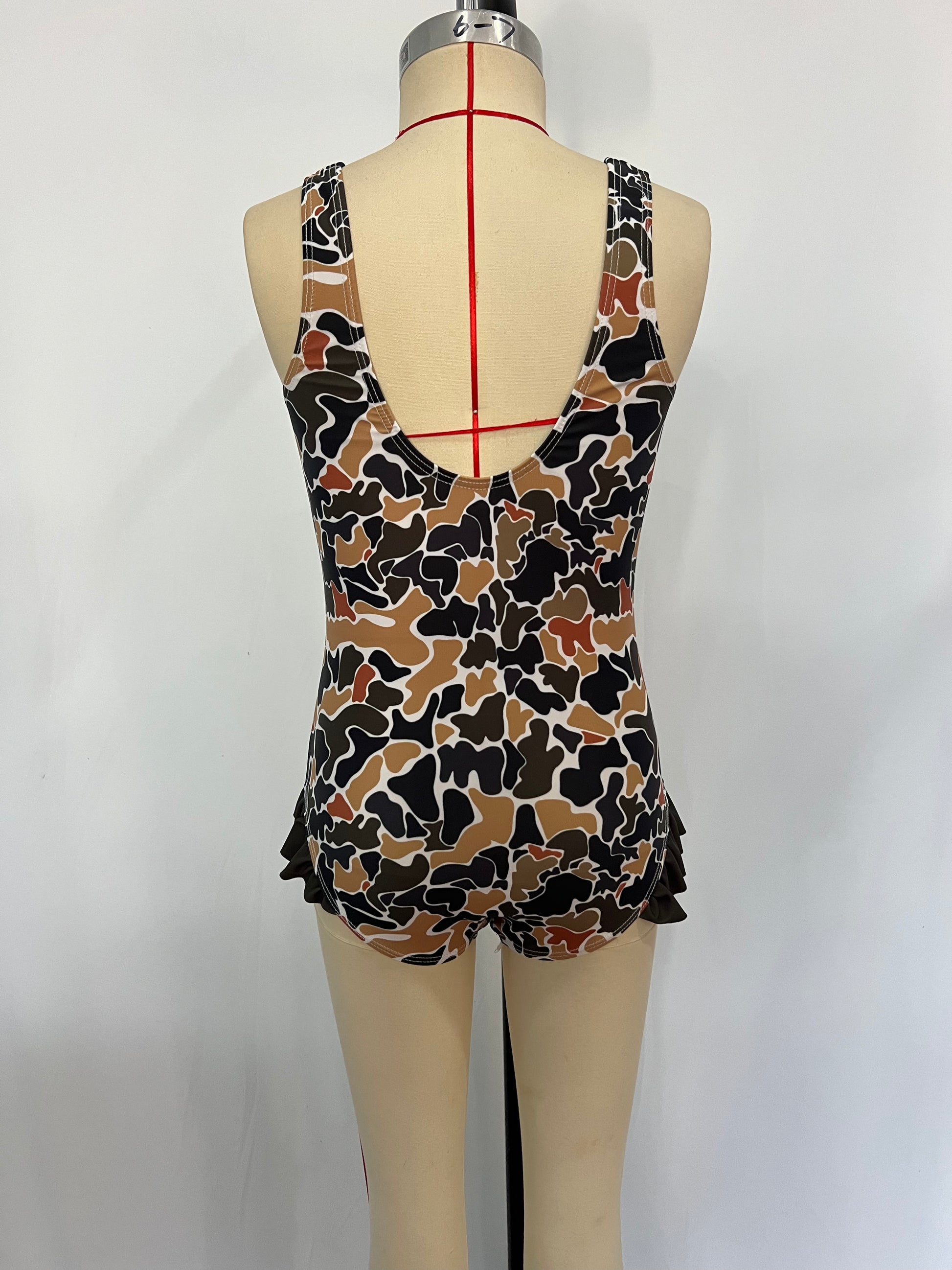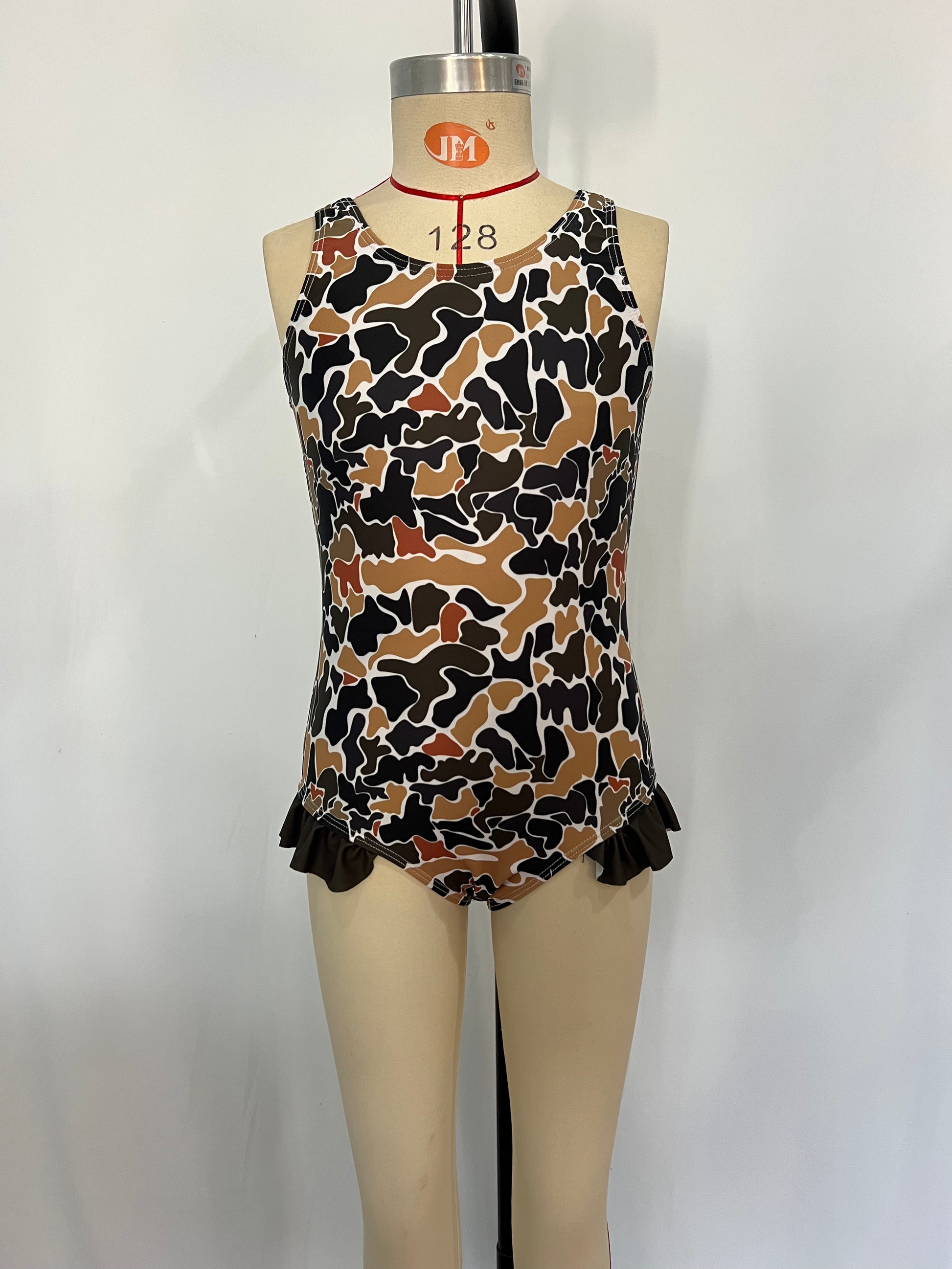 S0239 Brown Camo Print 1 Piece Girls Swimsuits