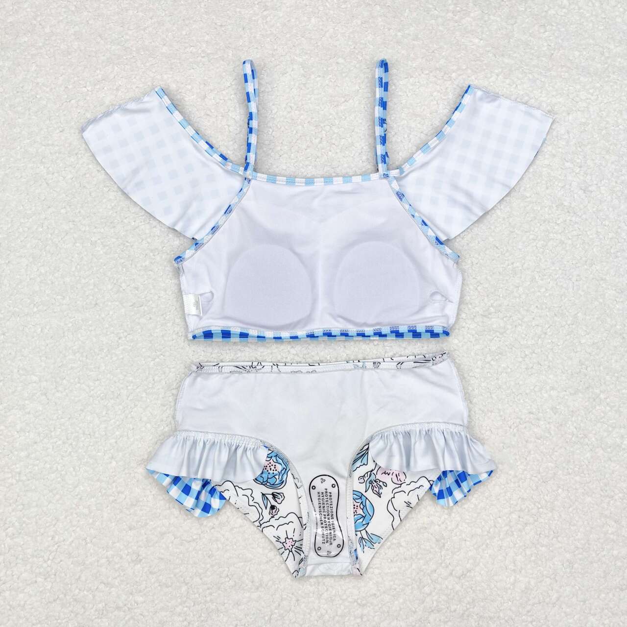 S0254 Blue Plaid Flowers Print Girls 2 Pieces Swimsuits