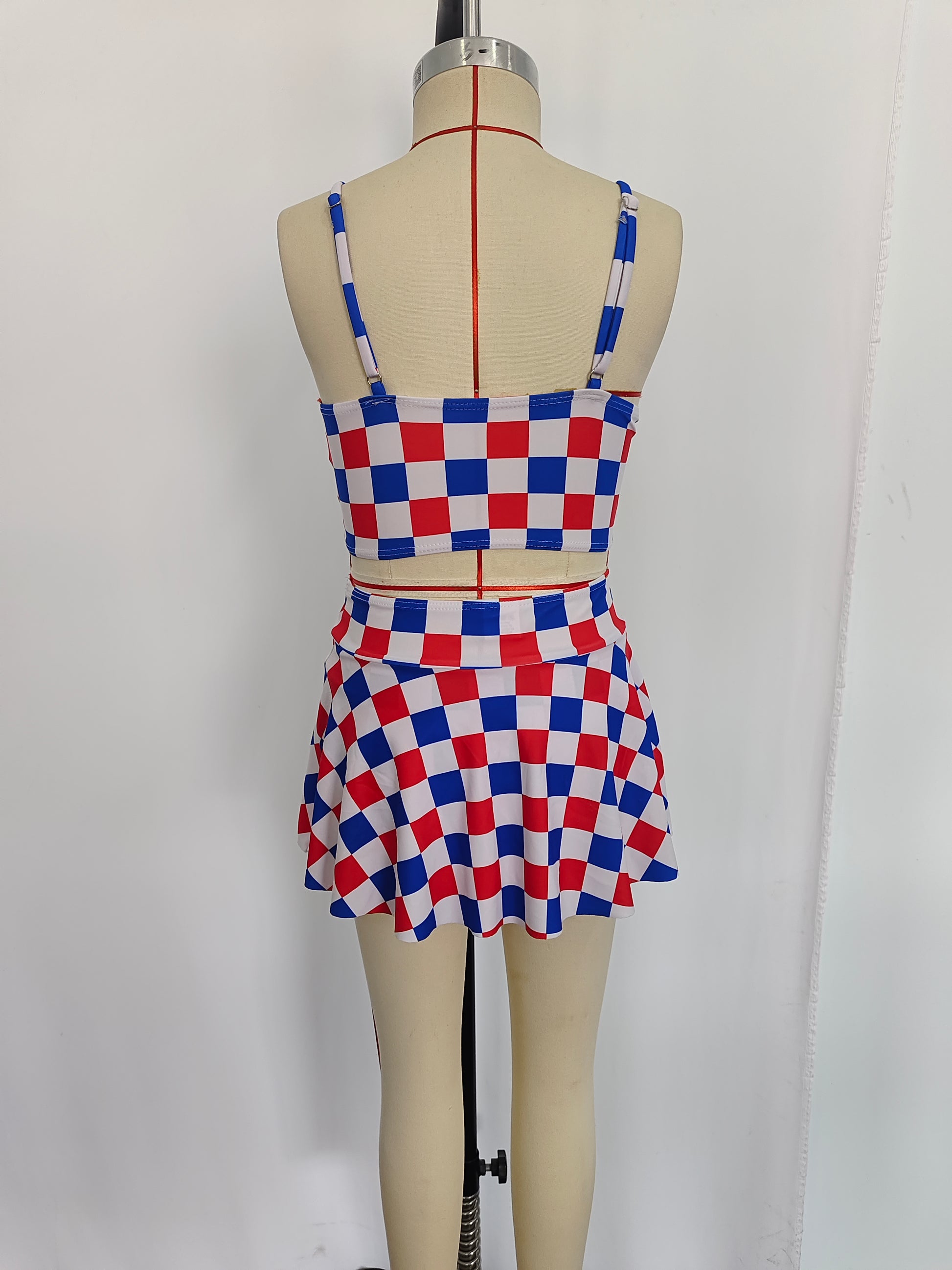 S0287 Blue Red Plaid Print Girls 2 Pieces 4th of July Swimsuits