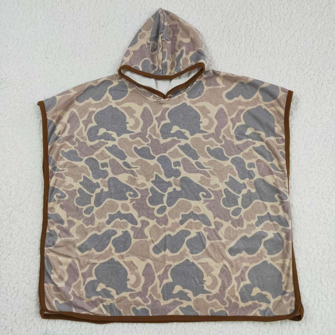 S0325 Brown Camo Print Kids Terry Swim Towel Cover Ups
