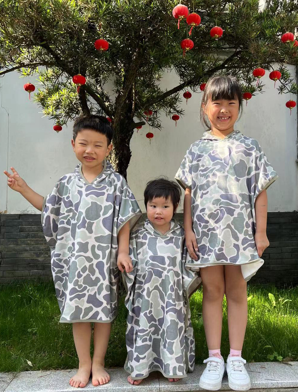 S0326 Green Camo Print Kids Terry Swim Towel Cover Ups