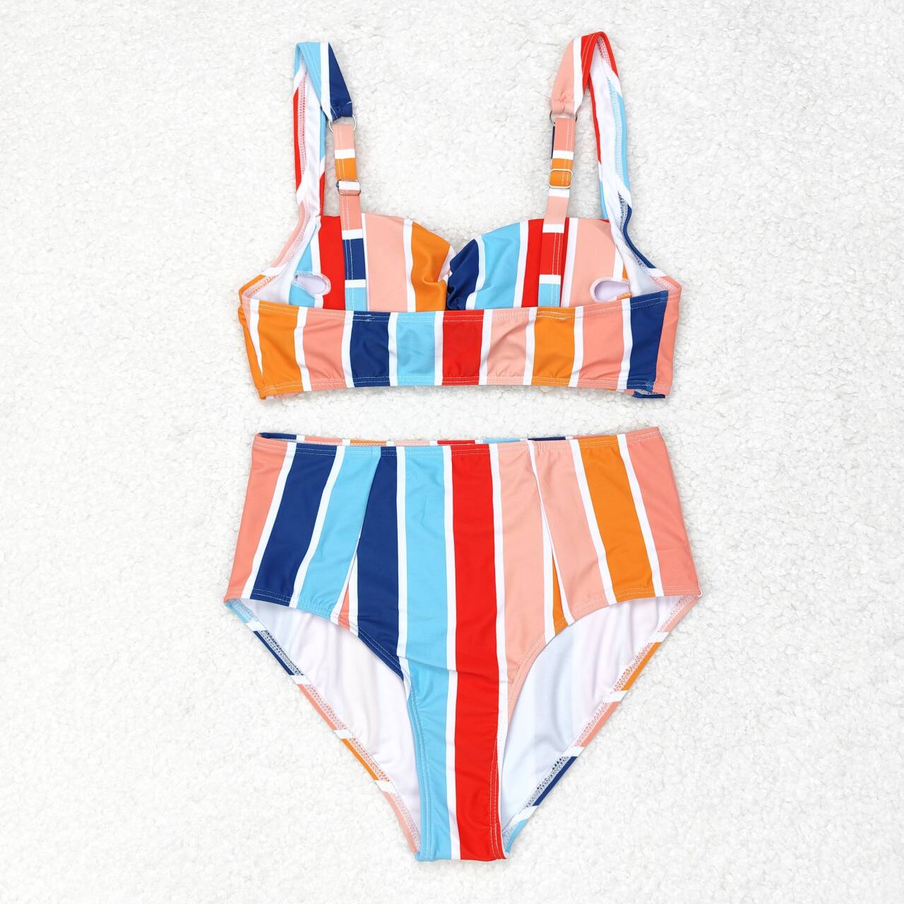 S0338 Adult Stripes Print Woman 2 Pieces Swimsuits