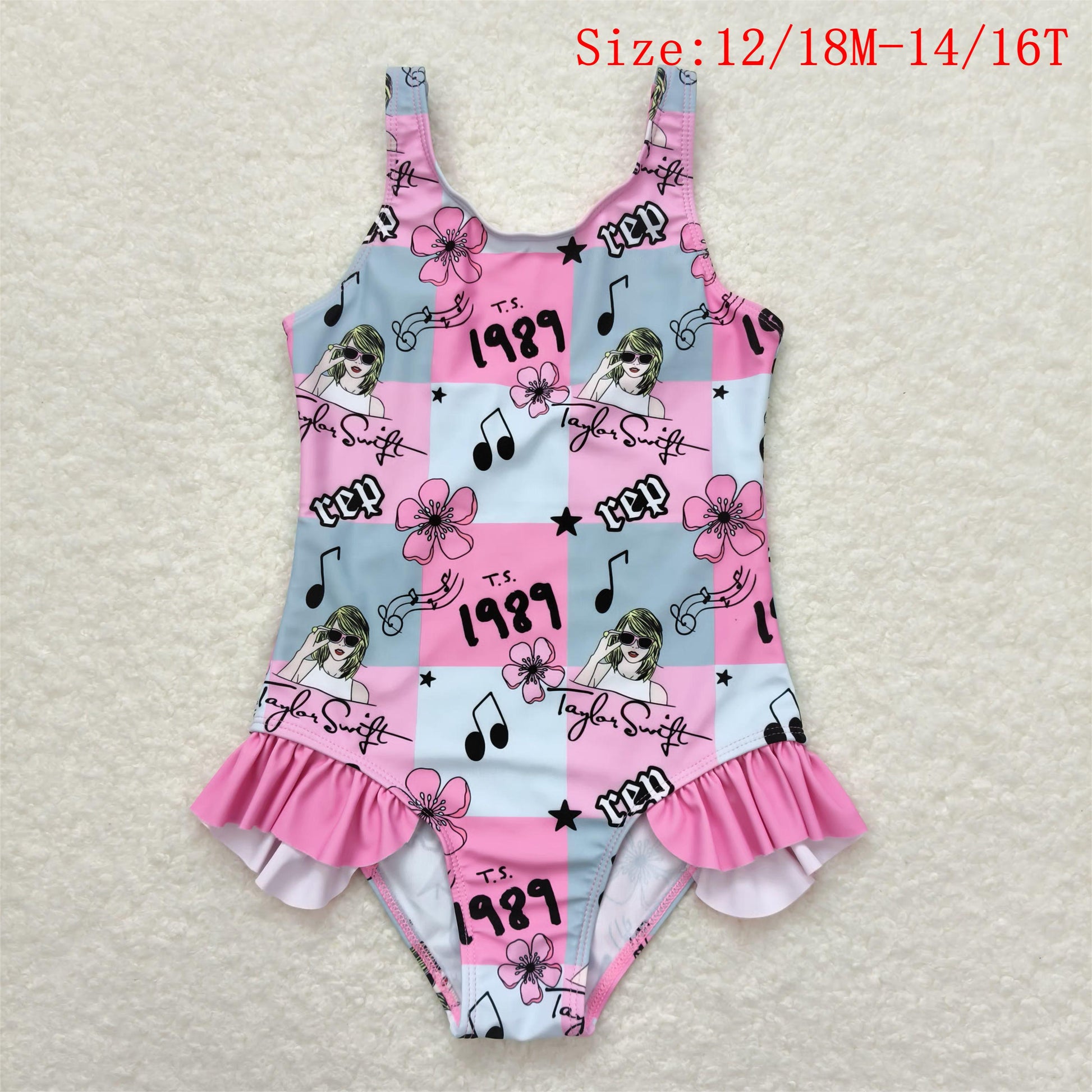 S0349 Singer Swiftie Flowers Print Girls 1 Piece Swimsuits