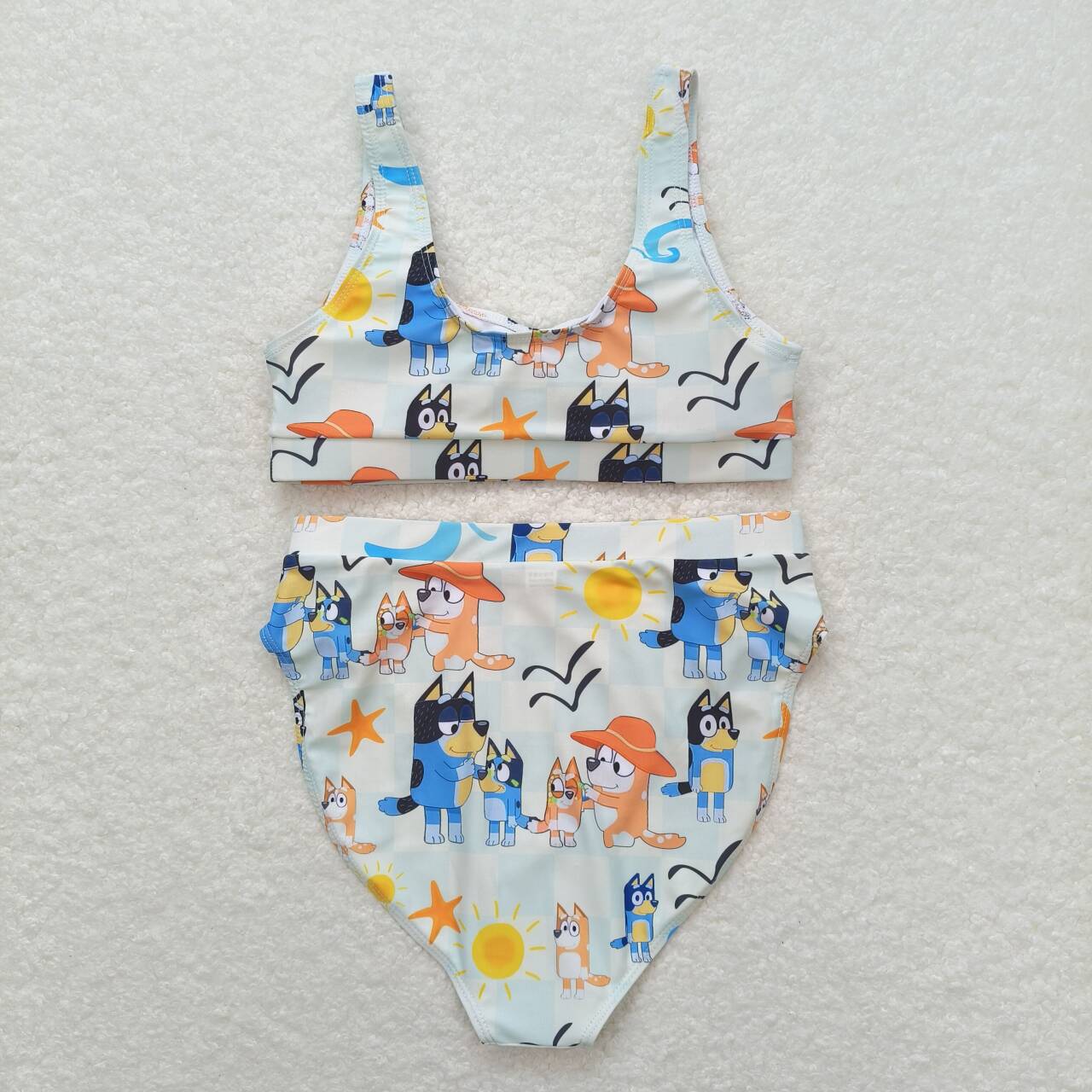 S0358 Adult Cartoon Dog Sandbeach Print Woman 2 Pieces Swimsuits