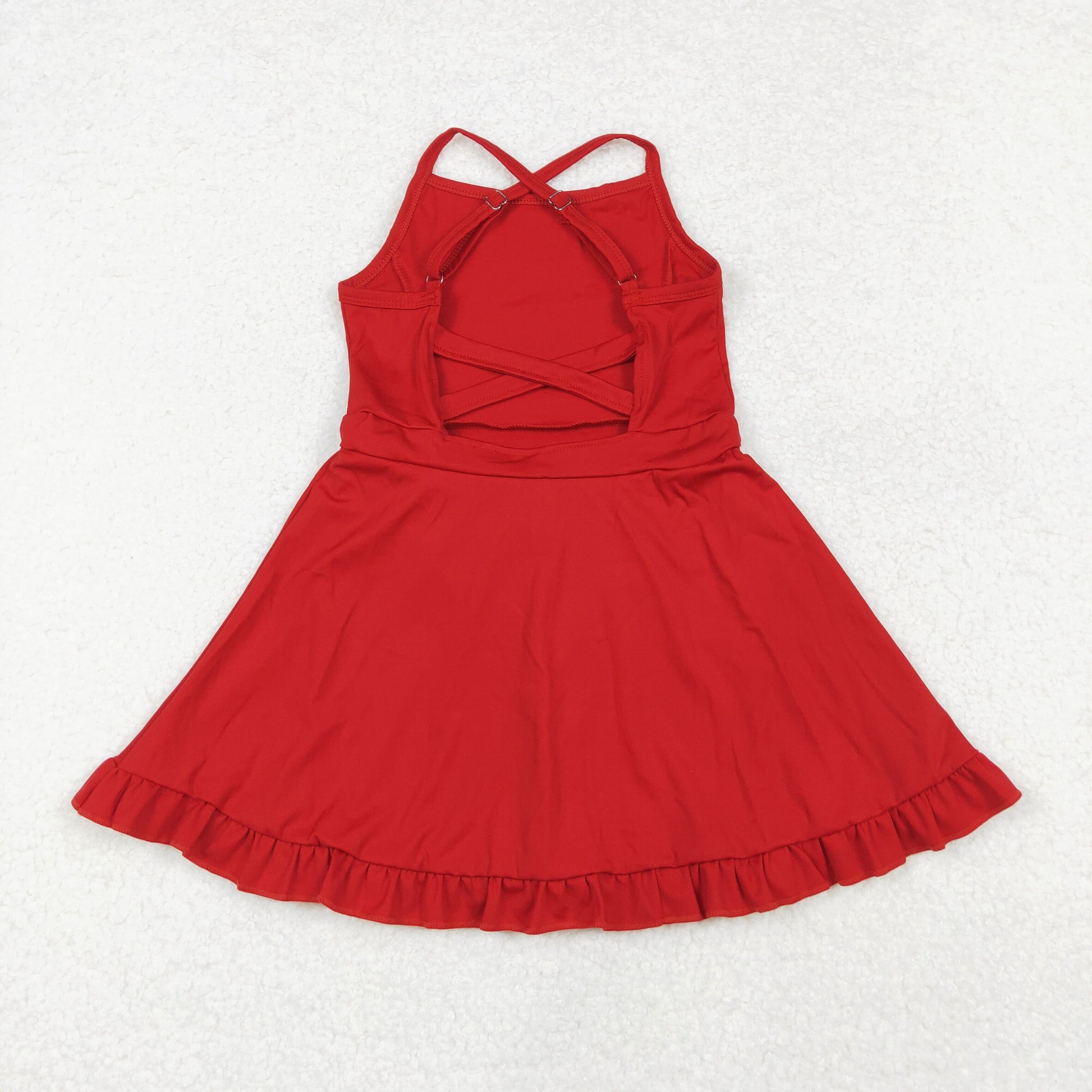 S0453 Red Color Girls Knee Length Shorts Yoga Dress 1 Pieces Swimsuits