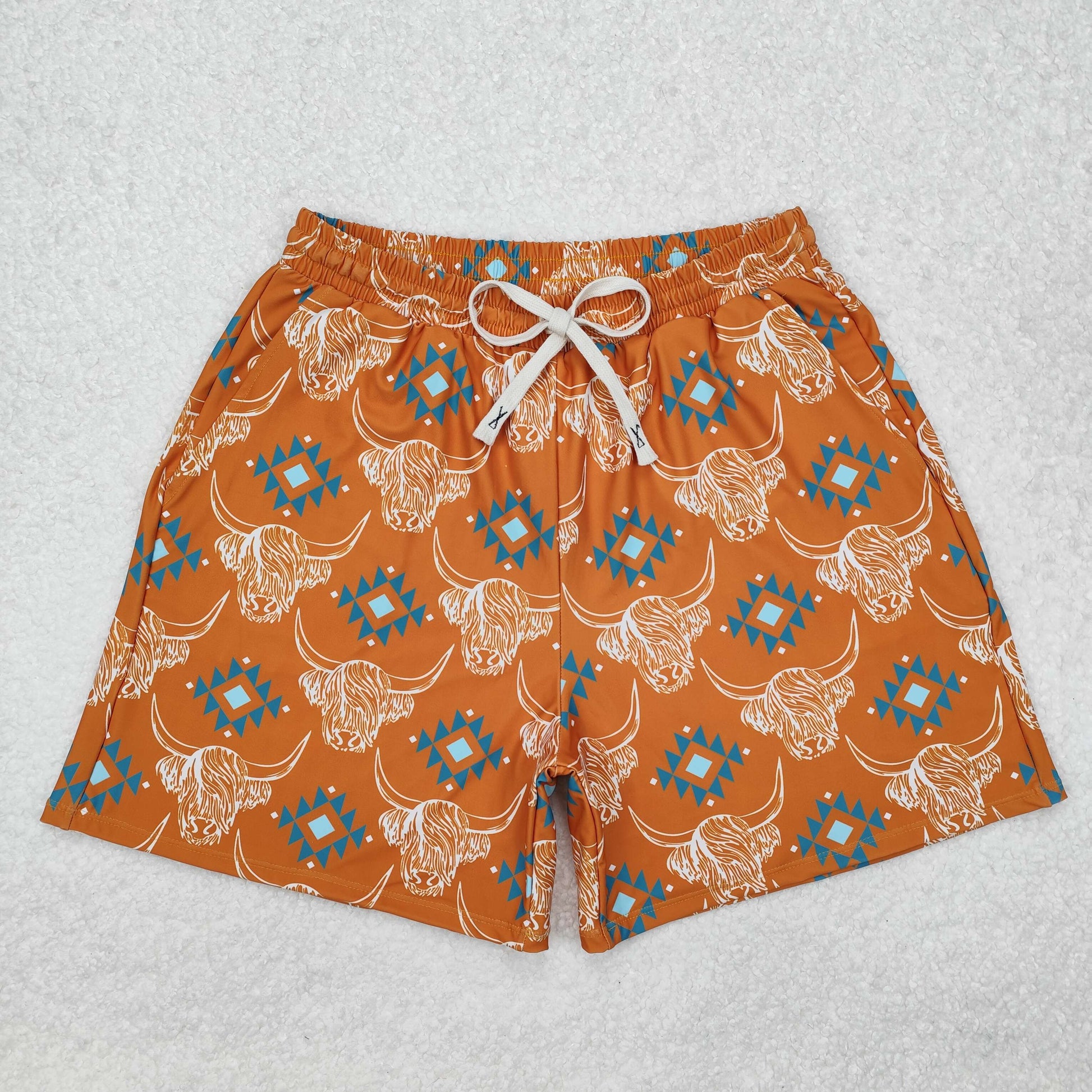 S0462 Adult Highland Cow Aztec Print Man Swim Trunks